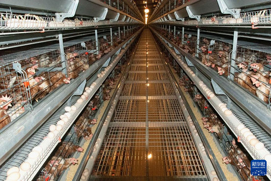 图为冷水滩区牛角坝镇麦子园村一处蛋鸡养殖基地(来源于新华社)。