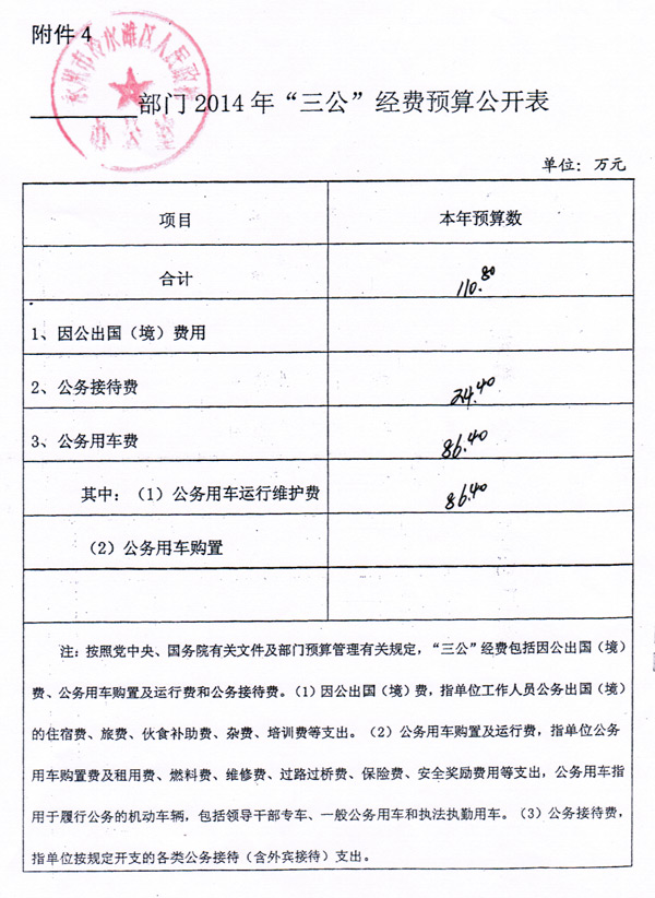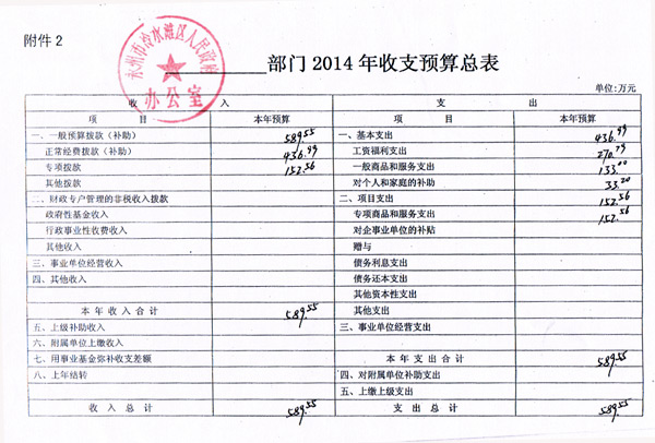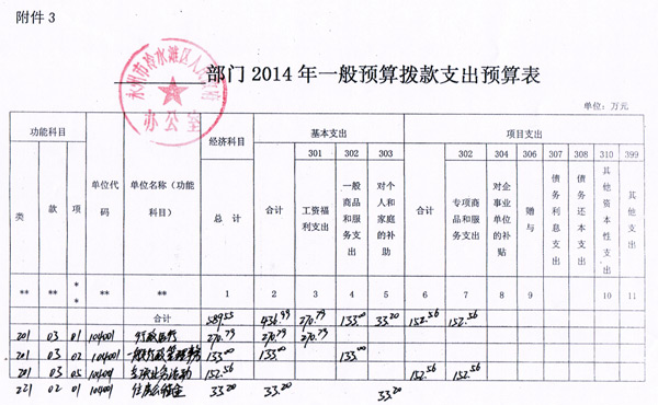 冷水滩区政府办2014年收支预算和三公经费预算公开表