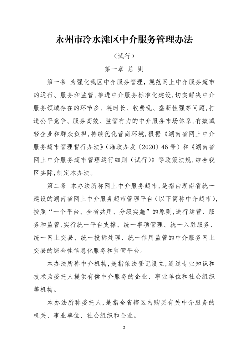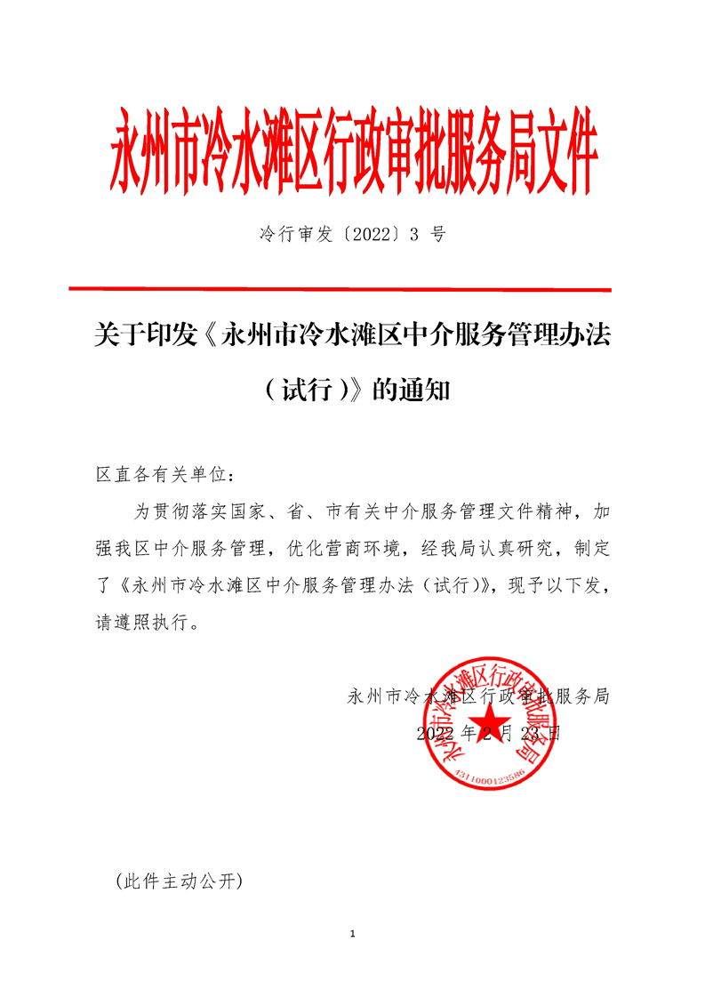 关于印发《永州市冷水滩区中介服务管理办法(试行)》的通知