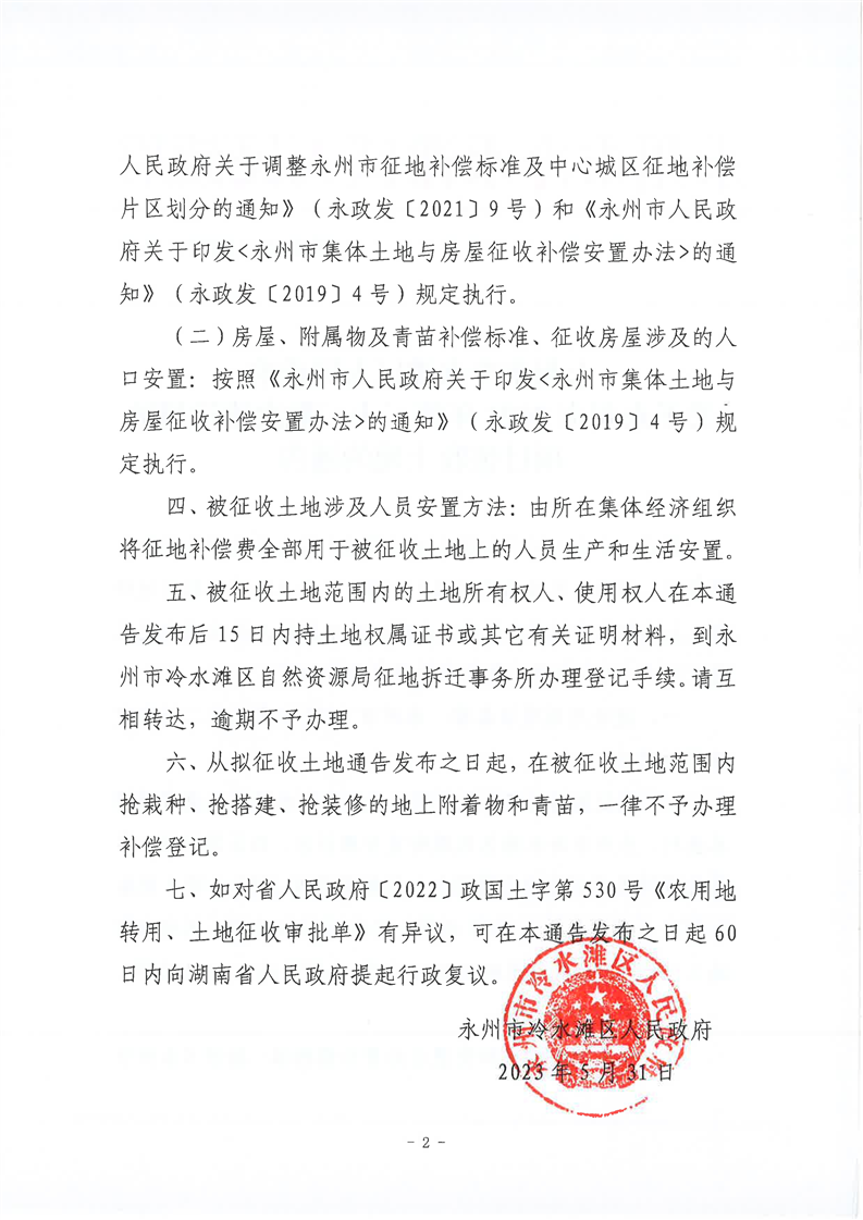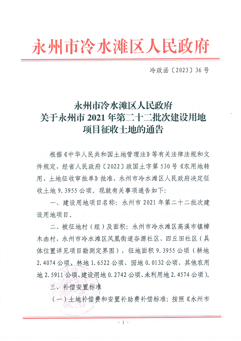 关于永州市2021年第二十二批次建设用地项目征收土地的通告