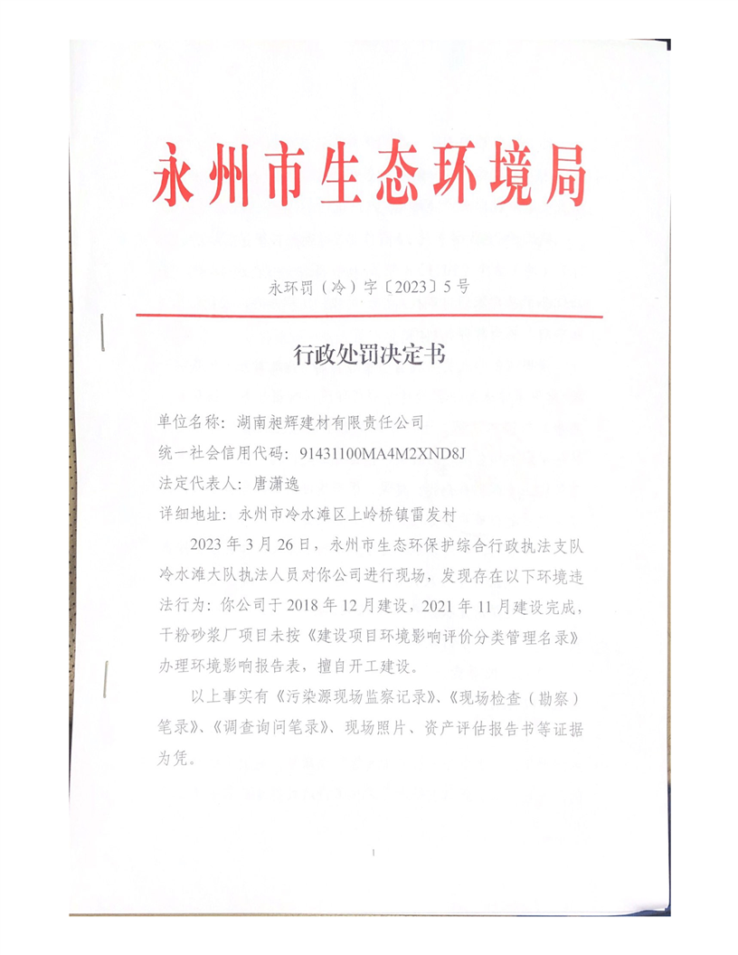 行政决定处罚决定书
