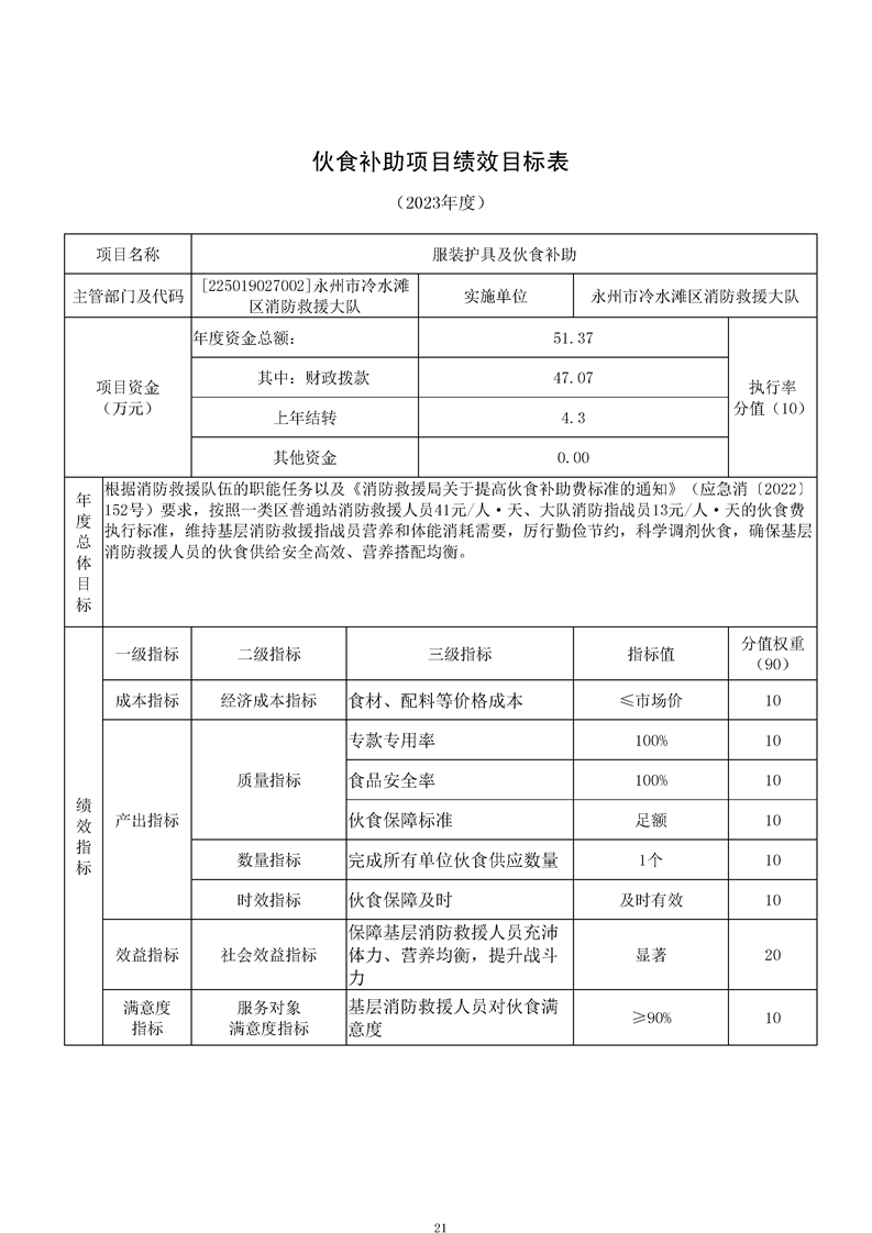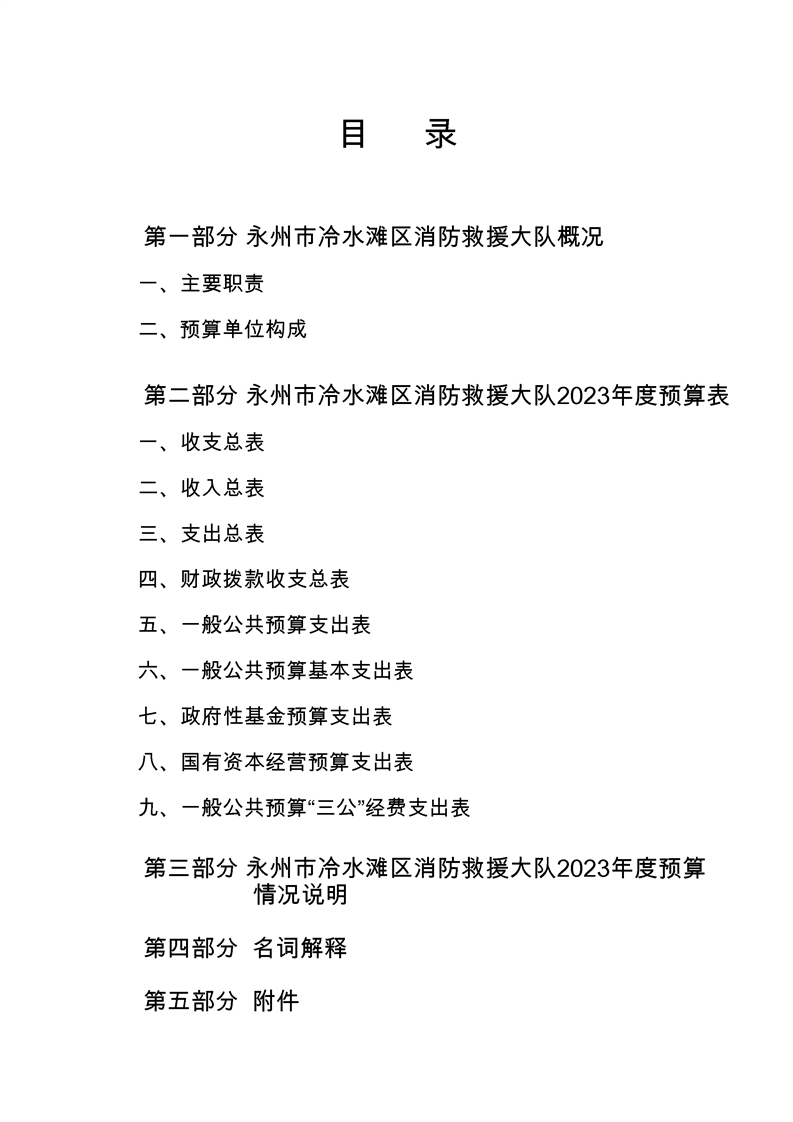 永州市冷水滩区消防救援大队2023年度经费预算
