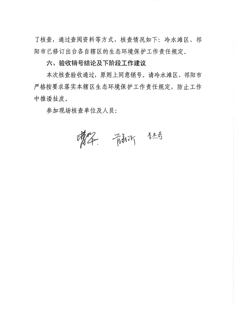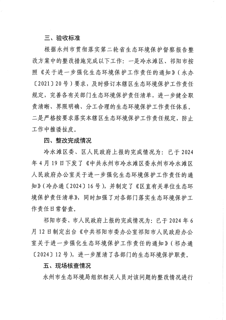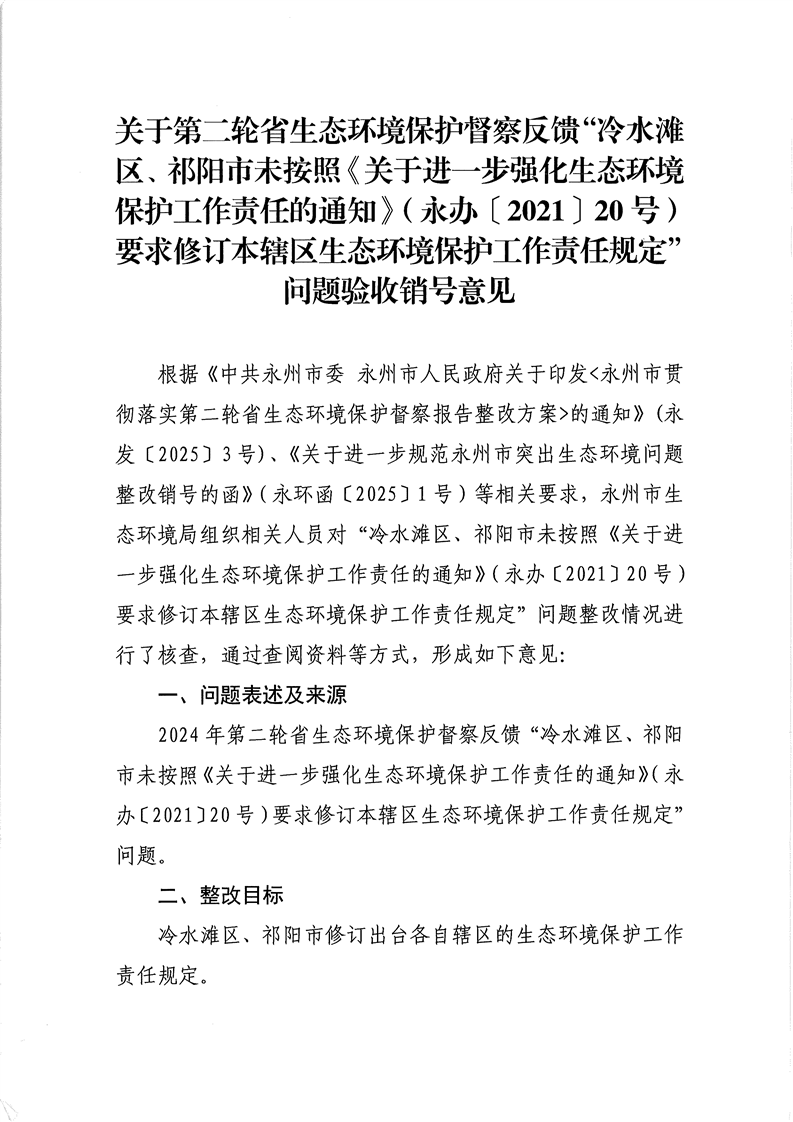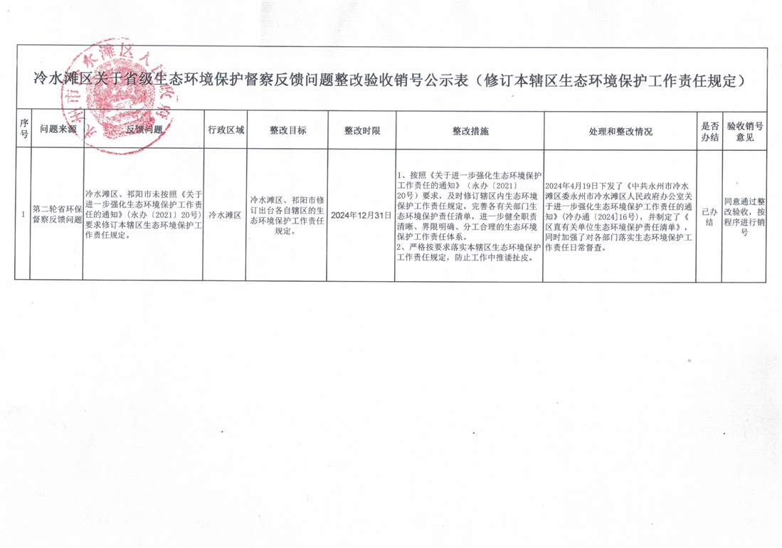 冷水滩区关于省级生态环境保护督察反馈问题整改验收销号公示表(修订本辖区生态环境保护工作责任规定)