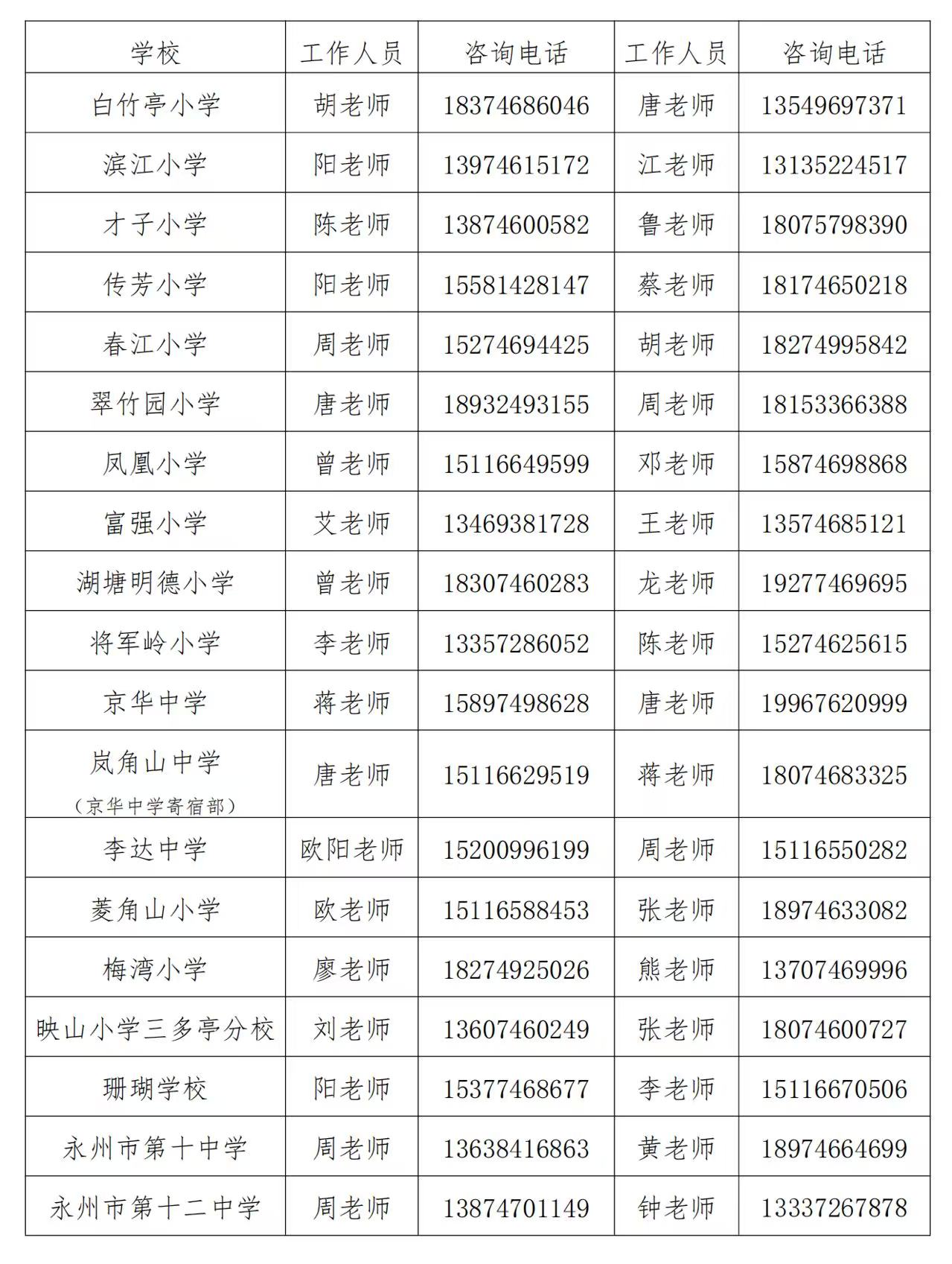 附件2:冷水滩区2025年秋季城区义务教育学校招生咨询电话