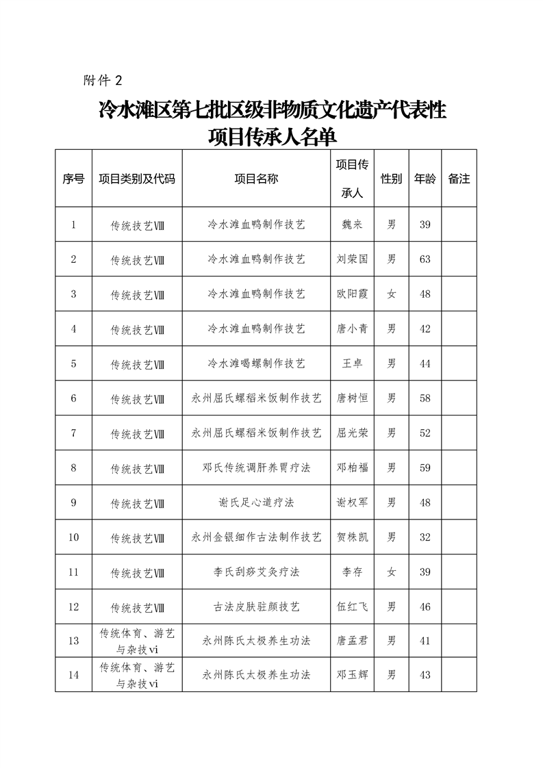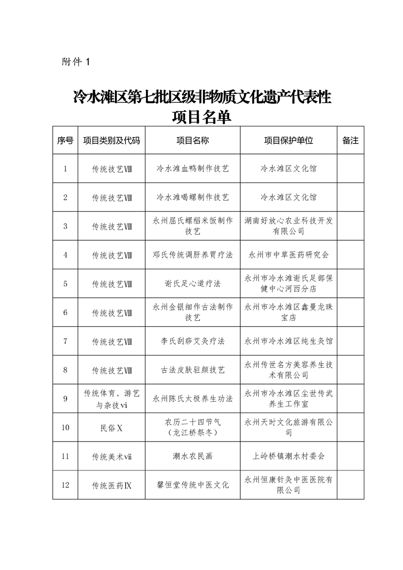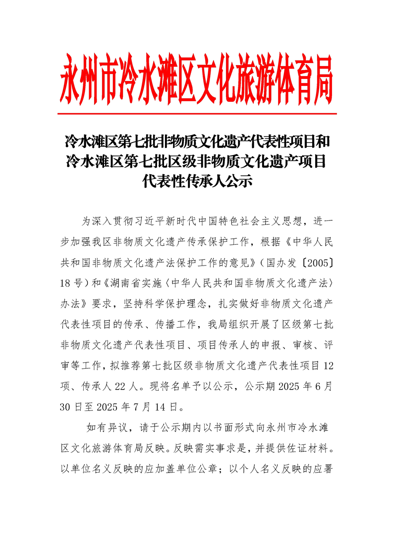 冷水滩区第七批非物质文化遗产代表性项目和冷水滩区第七批区级非物质文化遗产项目代表性传承人公示