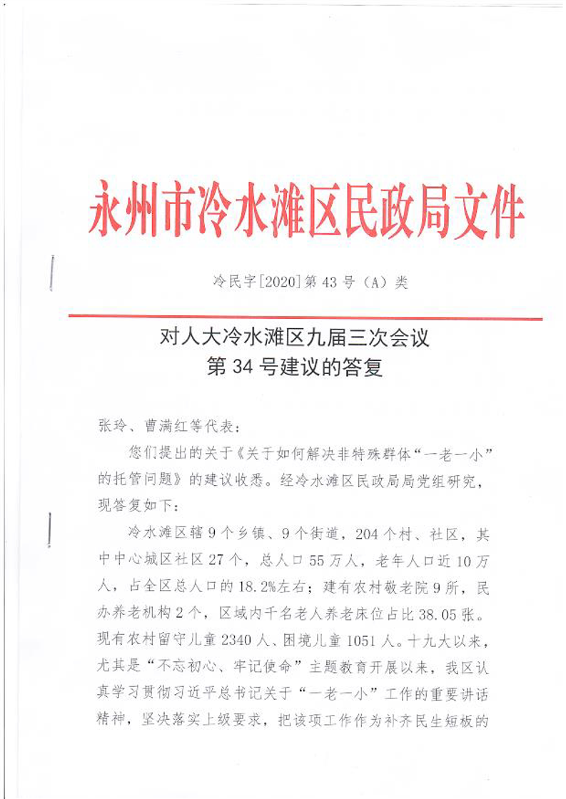 对区九届人大四次会议第34号建议的答复
