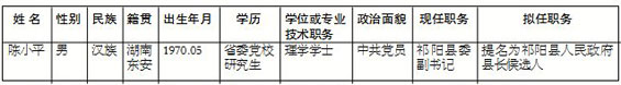为了加强对干部选拔工作的监督,提高识别和任用干部的准确程度,现对省委常委会会议研究决定的下列候选人人选进行任前公示: