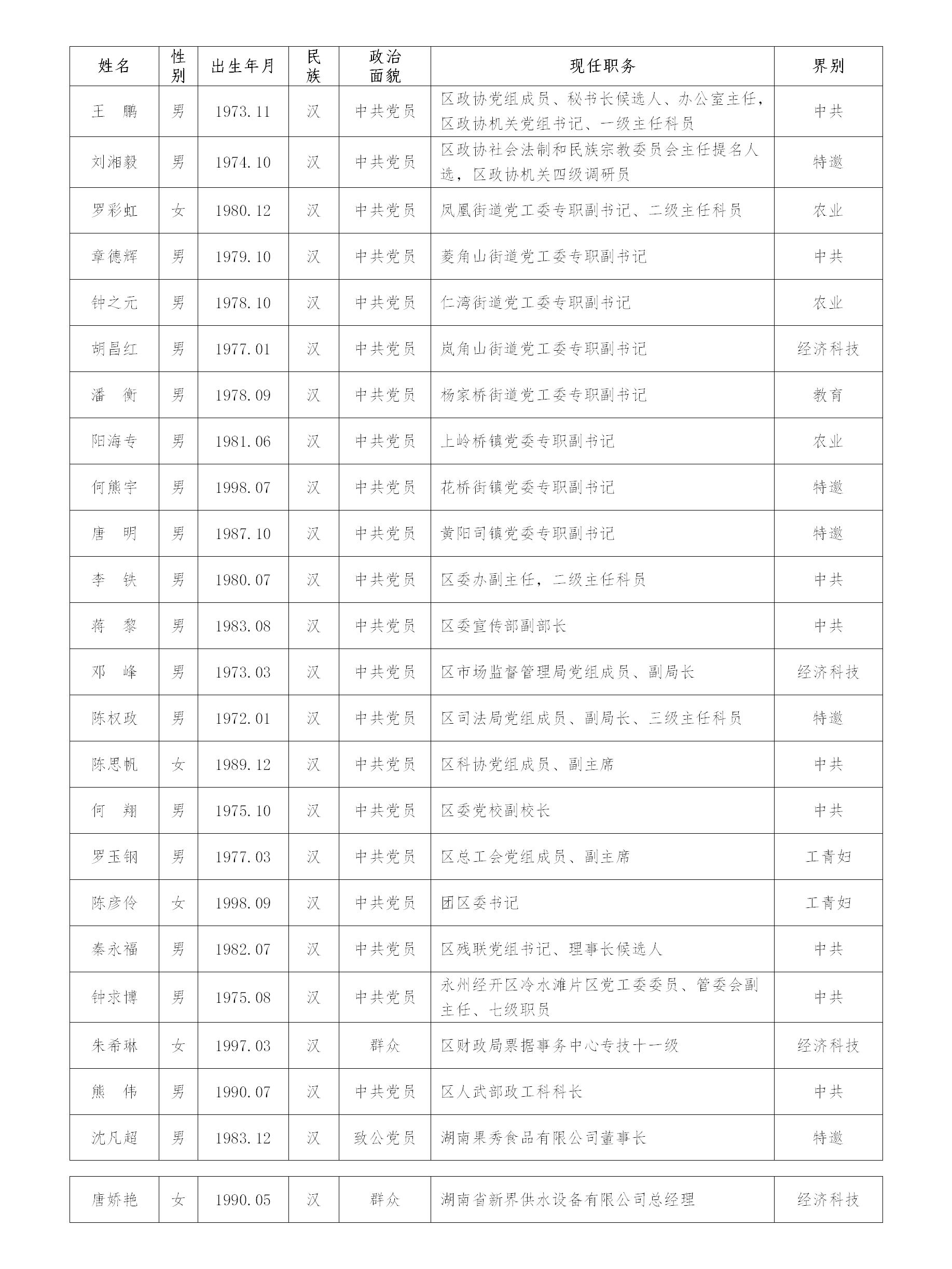 二、政协冷水滩区第十届委员会委员建议人选(共24人,排序不分先后)