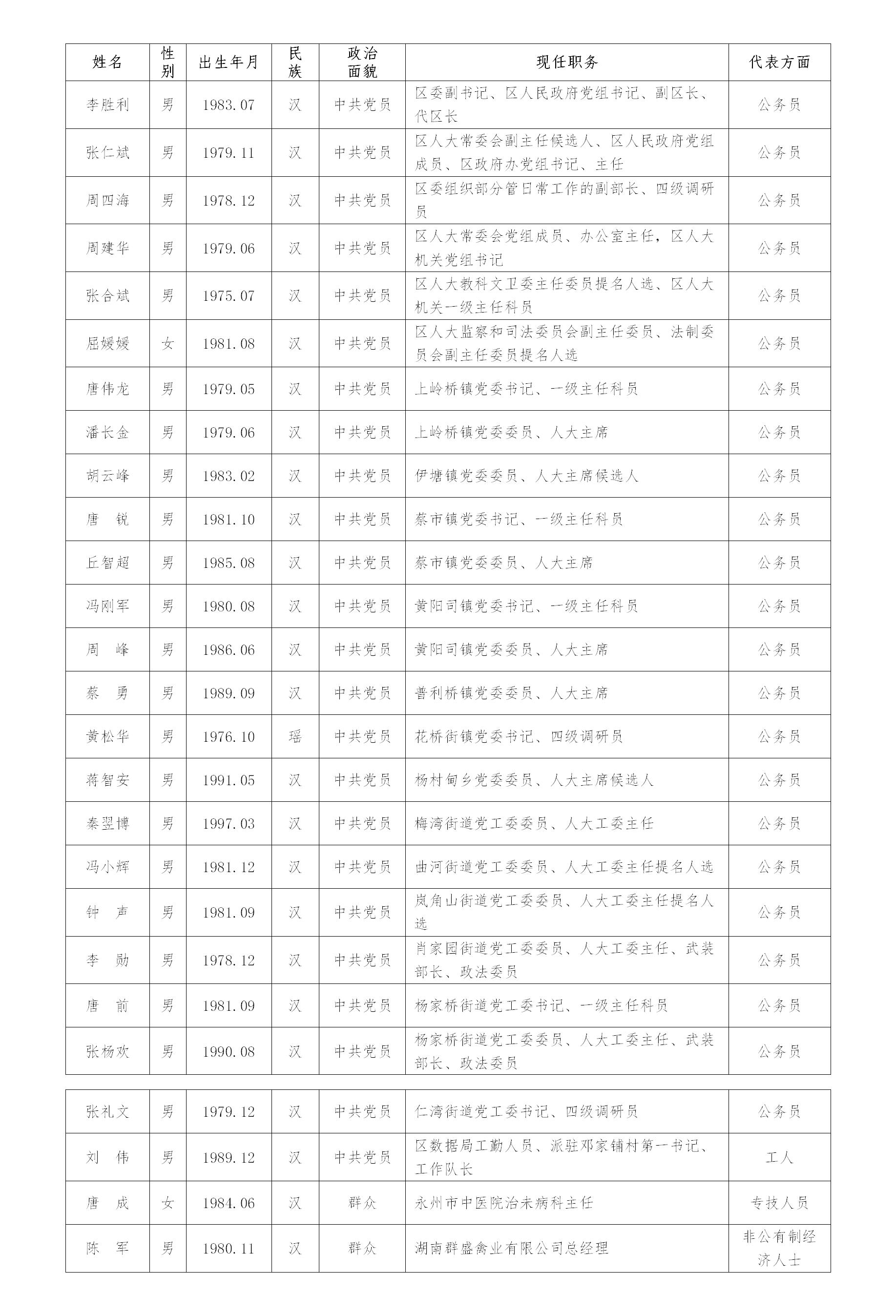 一、冷水滩区第十届人民代表大会代表建议人选(共26人,排序不分先后)