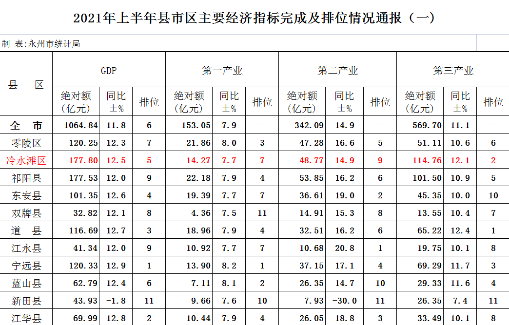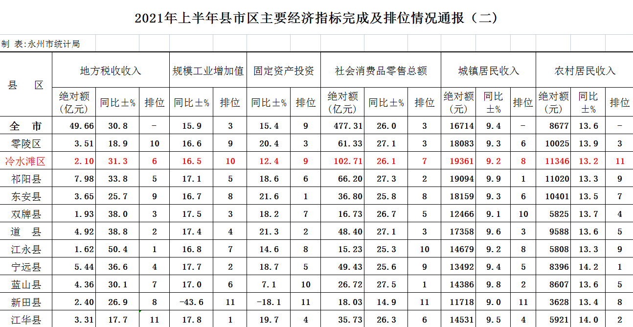 2021年上半年县市区主要经济指标完成及排位情况通报