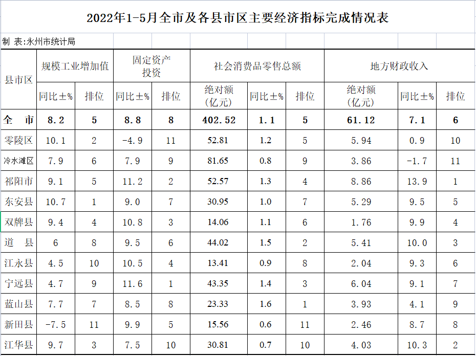 2022年1-5月全市及各县市区主要经济指标完成情况表
