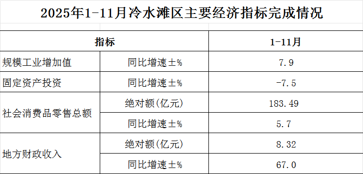 2025年1-11月冷水滩区主要经济指标完成情况