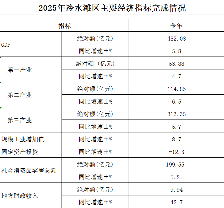 2025年冷水滩区主要经济指标完成情况