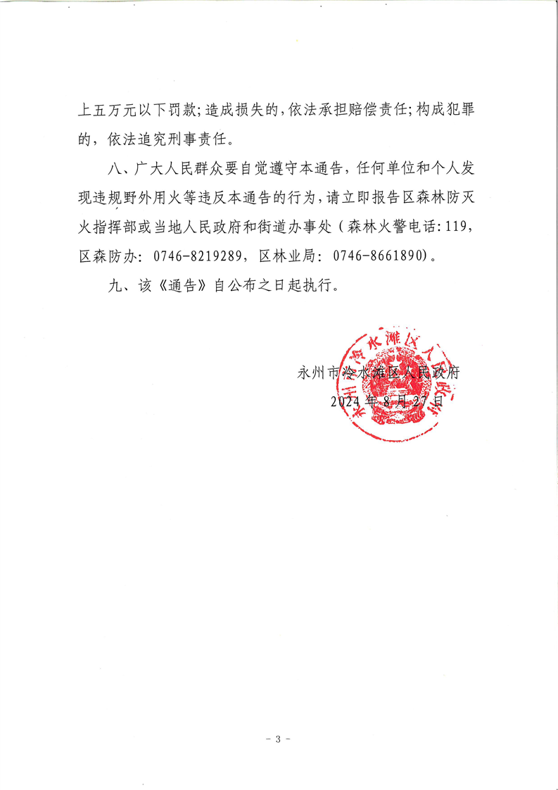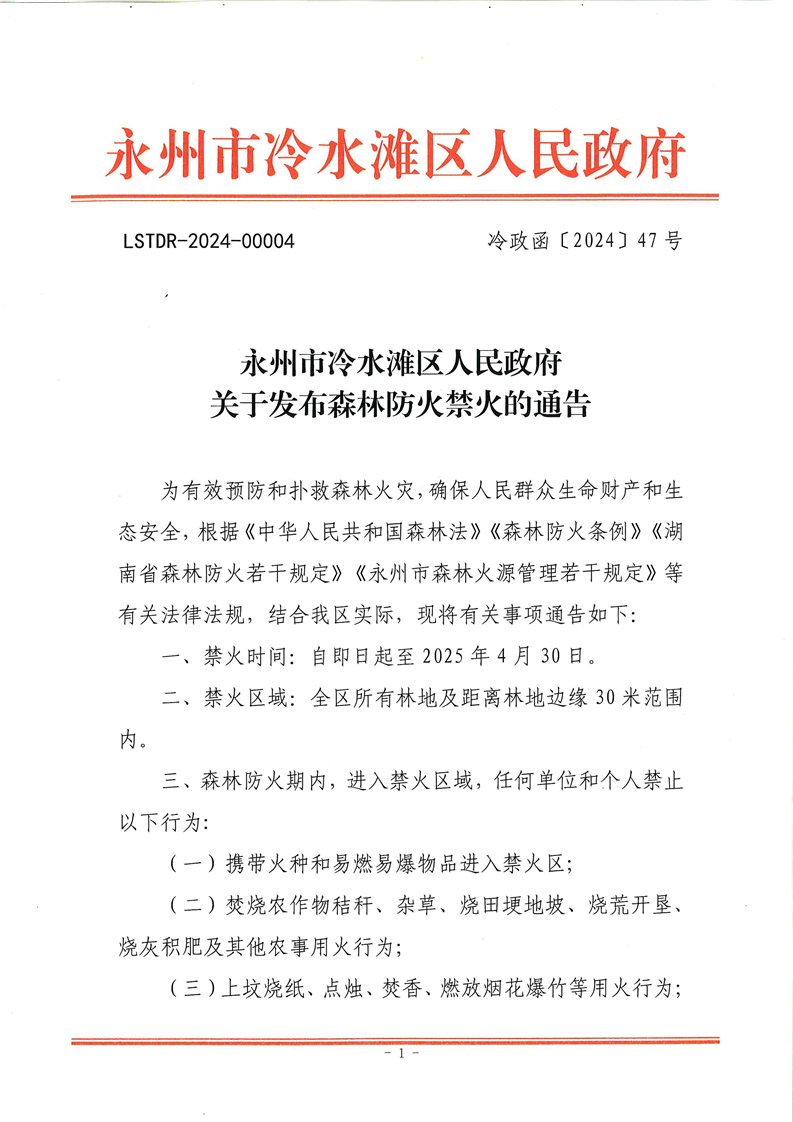 永州市冷水滩区人民政府关于发布森林防火禁火的通告(冷政函〔2024〕47号)