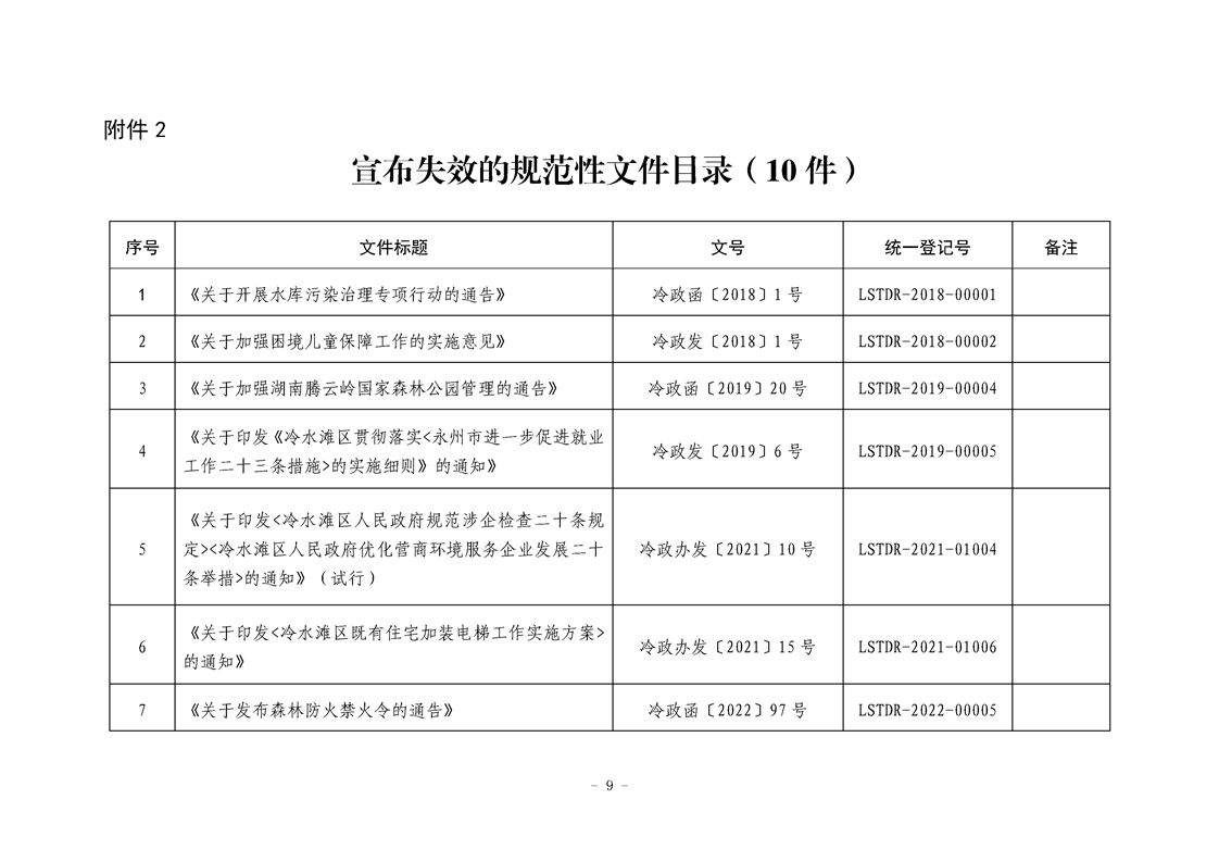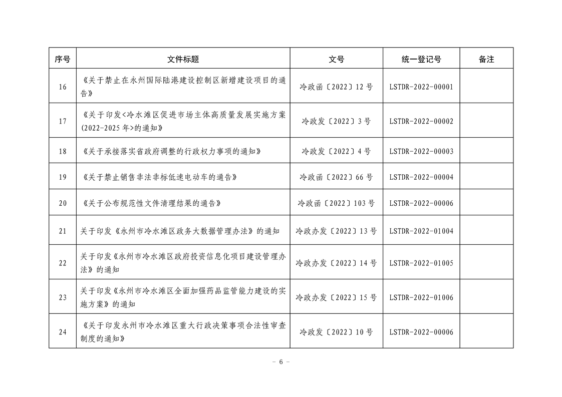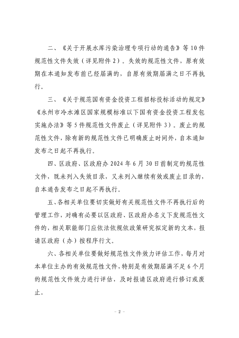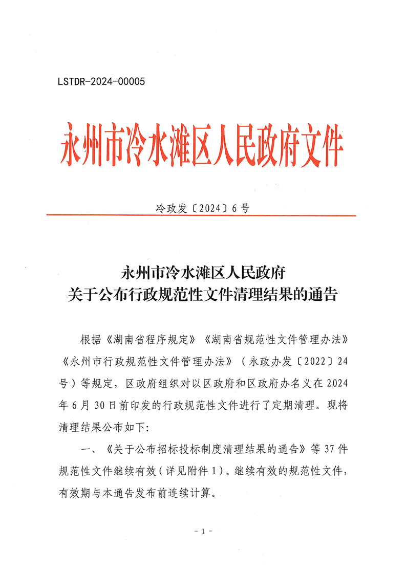 永州市冷水滩区人民政府关于公布行政规范性文件清理结果的通告(冷政发〔2024〕6号)