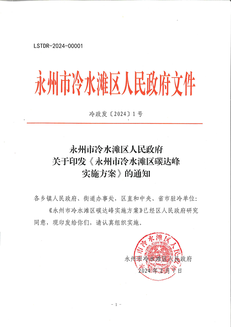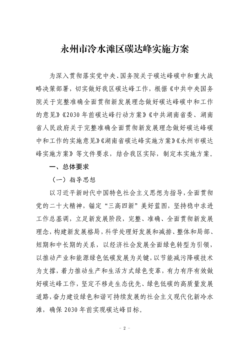 永州市冷水滩区碳达峰实施方案(冷政发〔2024〕1号)