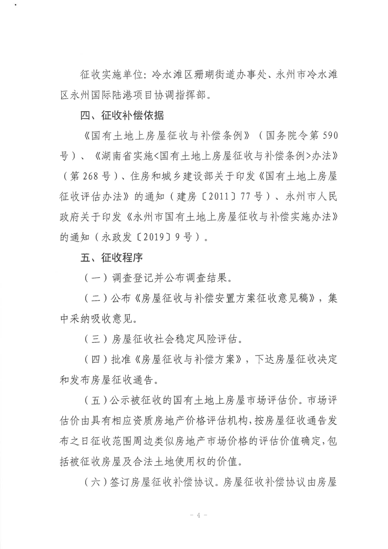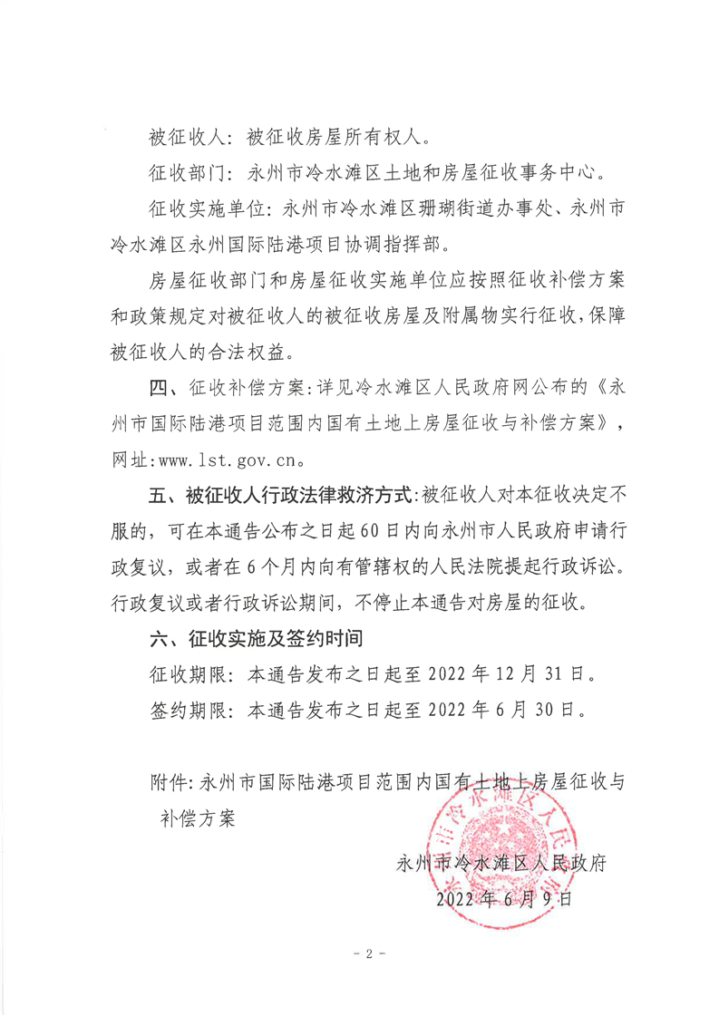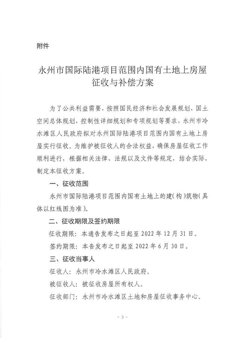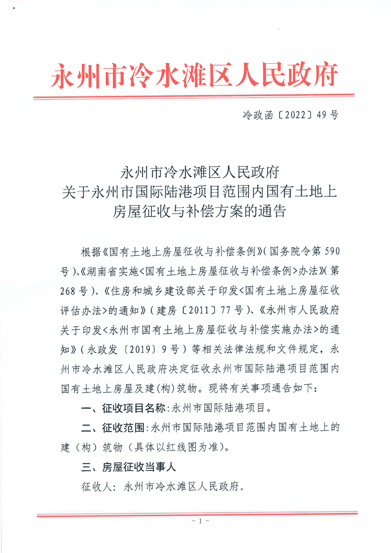 永州市冷水滩区人民政府关于永州市国际陆港项目范围内国有土地上房屋征收与补偿方案的通告