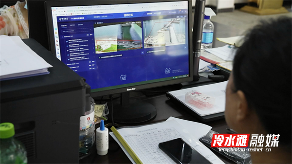 值守人员在电脑端查看重点水域情况(李秋燕 摄)