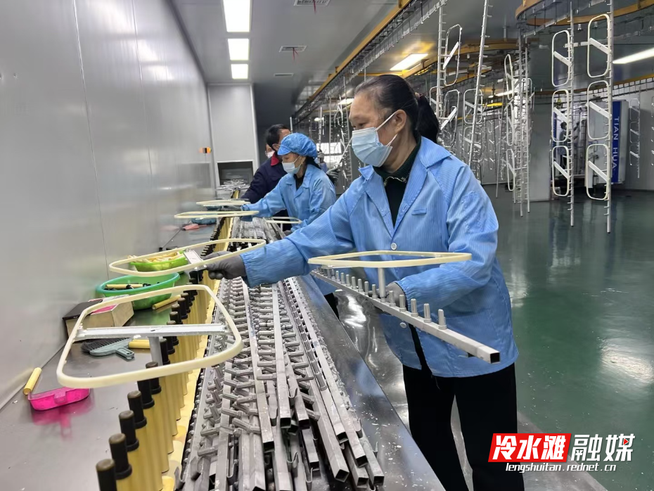 在永州京辉科技有限公司生产车间,50多台全自动注塑机正开足马力,全力赶制小家电配件;180多名工人已全部到岗,各司其职,忙碌而有序地操作着各种设备,确保每一件产品都能保质保量完成。该公司负责人刘美花介绍道:“我们今年初六就开工了,满负荷生产,我们的订单目前排到了今年的8月份,主要产品销售在浙江、广东、泰国、美国、越南,年产值的话大概今年是在4~5个亿左右。下一步,我们想购买第二期土地,建第二期厂房,我们想从一个颗粒做到整台机器。”