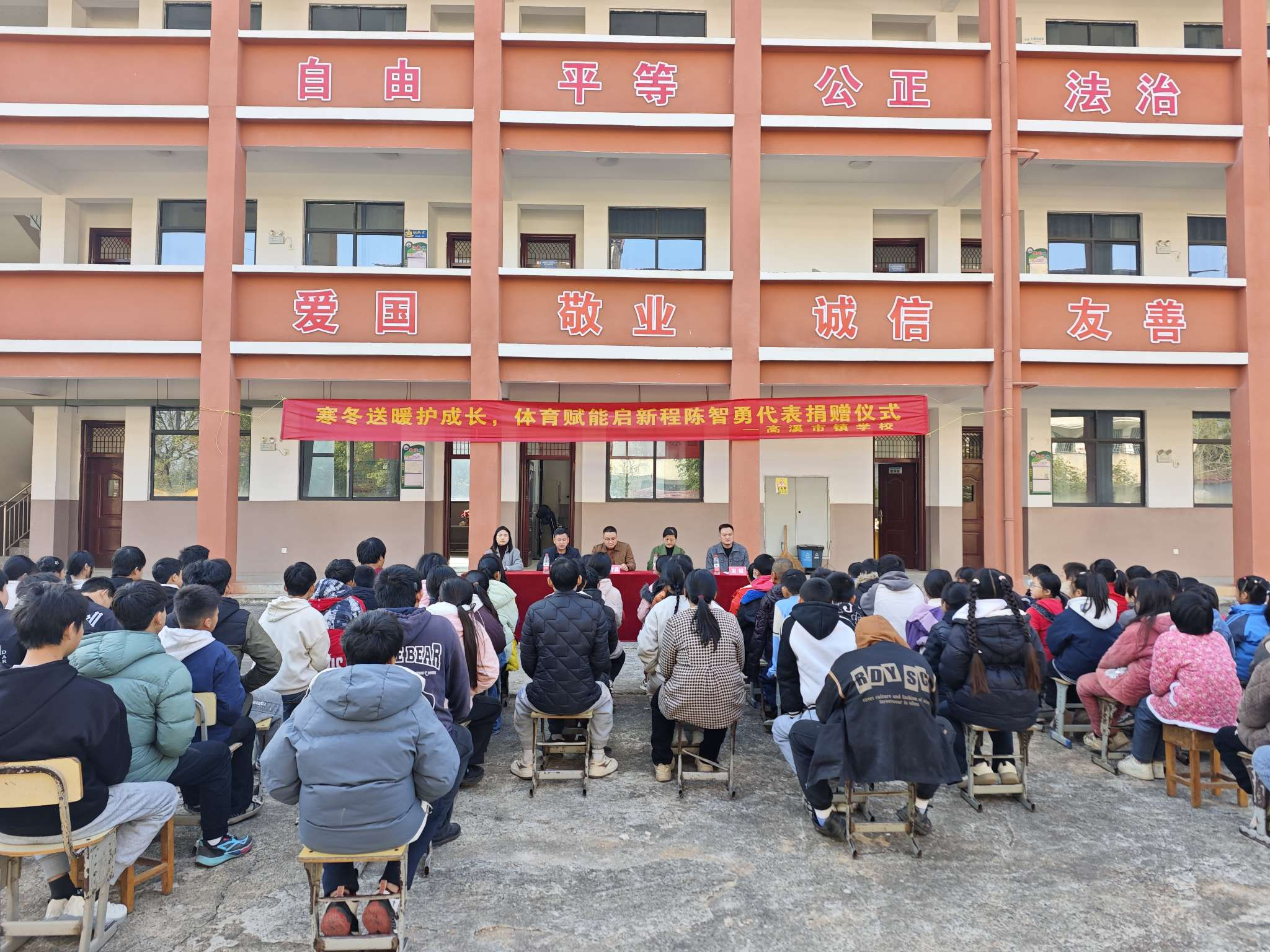 (通讯员 梁浩) 1月14日,在冷水滩区高溪市镇党委、政府及武装部的联合牵头下,永州市人大代表、爱心企业家陈智勇一行走进高溪市镇学校,为全校88名学生送上满载关怀的御寒与体育物资,用实际行动为孩子们的冬日校园生活增添暖意。