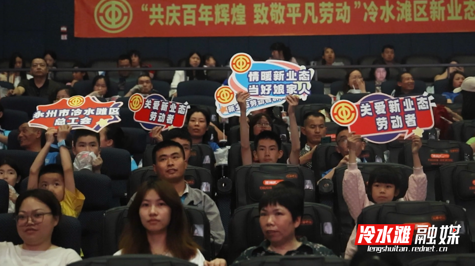 冷水滩融媒5月1日讯 (记者 周艳梅)4月30日晚,永州市总工会和冷水滩区总工会联合开展“共庆百年辉煌 致敬平凡劳动”主题观影活动,邀请800余名快递员、网约车司机、外卖骑手等新就业形态劳动者及其家属免费观看电影,以温情行动致敬城市服务者。
