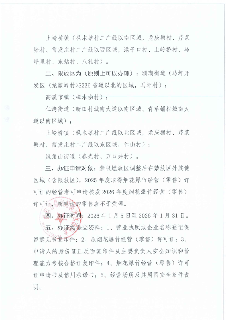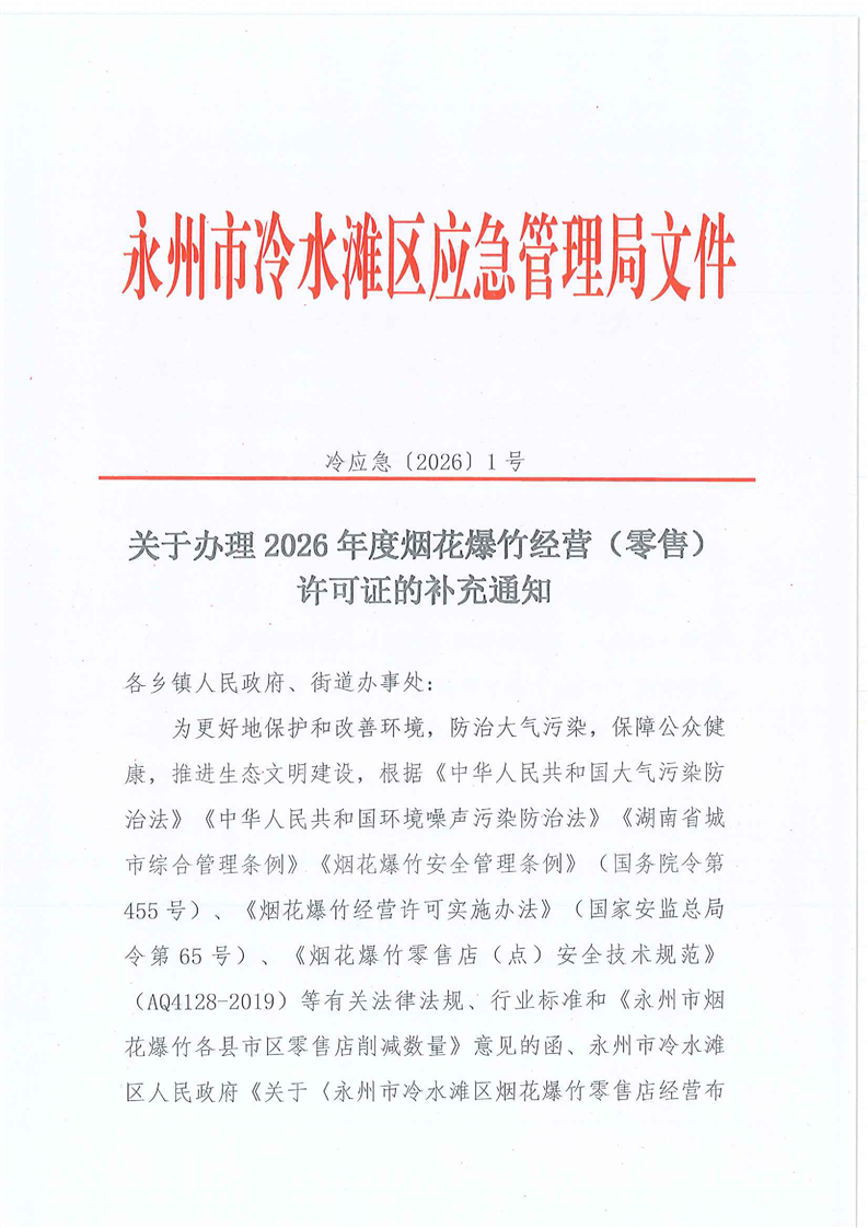 关于办理2026年度烟花爆竹经营(零售)许可证的补充通知