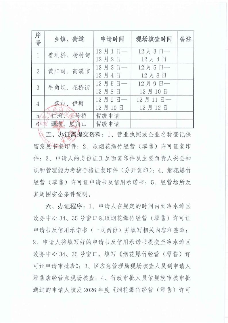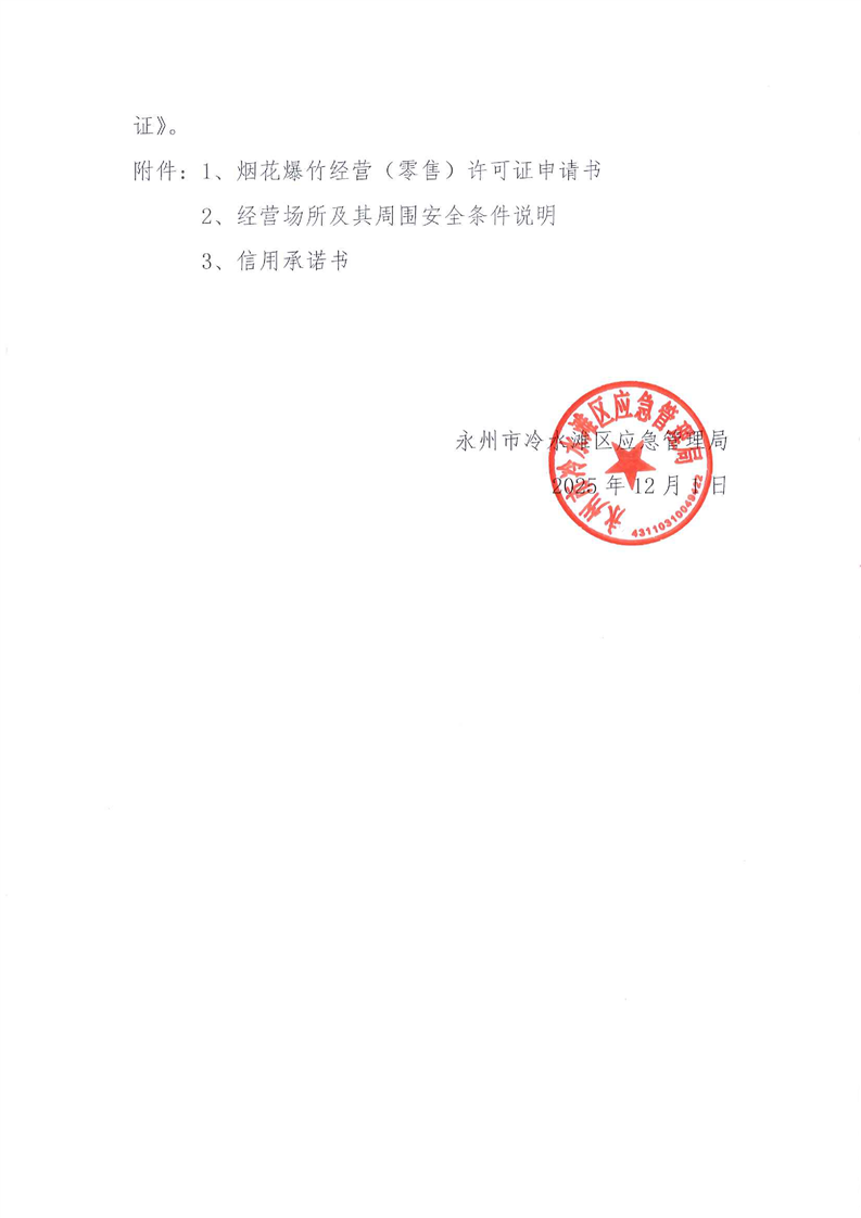 关于办理2026年度烟花爆竹经营(零售)许可的通知
