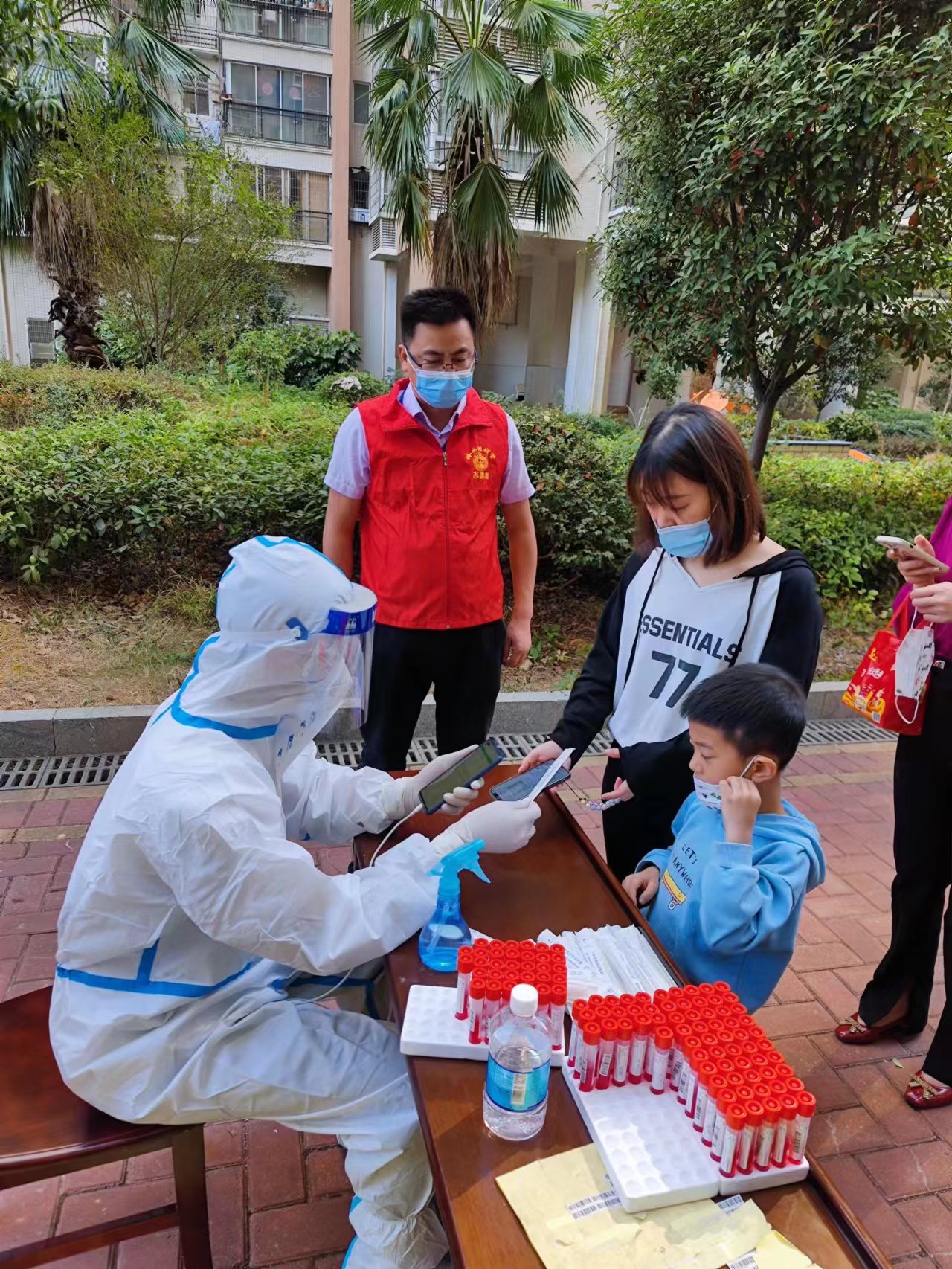 10月19日,冷水滩区在市外返冷人员排查中发现1例新冠肺炎感染者,为进一步全面排查新冠病毒感染者和潜在传播风险,加大风险防范力度,切实保障人民群众生产生活秩序和身体健康,冷水滩区城管局紧紧围绕区委、区政府的决策部署,积极协同配合街道社区、医护工作人员有效开展疫情防控工作,对帝王广场小区实行静态管控期间,城管局在蒋建华局长的带领下,组织160余人开展抗疫志愿服务活动,安排工作人员全天24小时3班倒轮流值班,积极配合紧急开展的四轮核酸检测工作,协助维持现场秩序,告知所有待检人员戴好口罩、保持一米线距离,帮助老年人录入信息、宣传防疫防控政策,有序进行核酸检测。