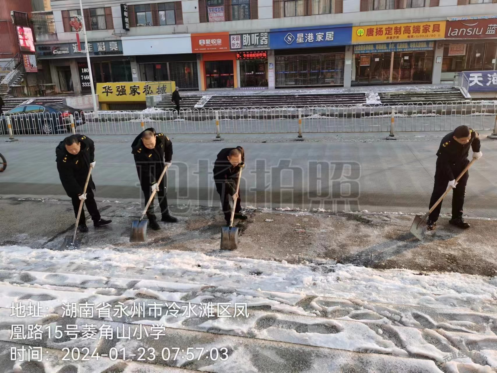 为切实做好低温雨雪天气的应对防范工作,冷水滩区城管局严格落实市、区相关部署和要求,及时启动冰雪天气应急预案,提前合理安排值班值守人员,应急车辆、除雪除冰工具全部准备到位。22日清晨七时起,各辖区中队值班人员坚守岗位,在做好城市管理日常巡查和管理工作的同时,进一步加强对城区各路段特别是铁路口、通化街、桥头市场、步行街、黄泥井等路段占道经营和马路市场的整治工作,全面排查城区户外广告、浮桥吊桥等存在的安全隐患并及时整改到位,确保城区街道整洁有序安全畅通。23日,区城管局局领导分片区带队,局机关、各辖区中队全员上阵,对辖区人行道、道路桥梁、学校周边、上下坡风险路段等重点地段积雪进行了清理。