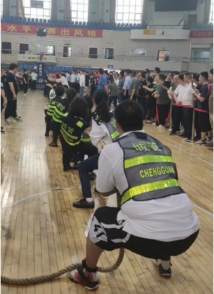 赛前,接到区总工会运动会比赛通知后,局党委高度重视,局干部职工积极报名参赛,精心挑选派出了8名男选手、4名女选手,12名精兵强将的最强阵容,局工会主席邓礼军进行了战前动员,向参赛运动员讲述了拔河比赛的基本规则和技巧,并鼓励大家坚定信心,力争取得好成绩。比赛中,我局队员们紧握麻绳、勒绳下腰、咬紧牙关、大家心往一处想、劲往一处使,力往一处用,一根绳,一条心,拔出了水平、拔出了气势,尤其是在胜负难分的关键时刻,大家毫不退却、咬紧牙关、坚持到底,用汗水和泪水向我们讲述了城管人团结的力量。