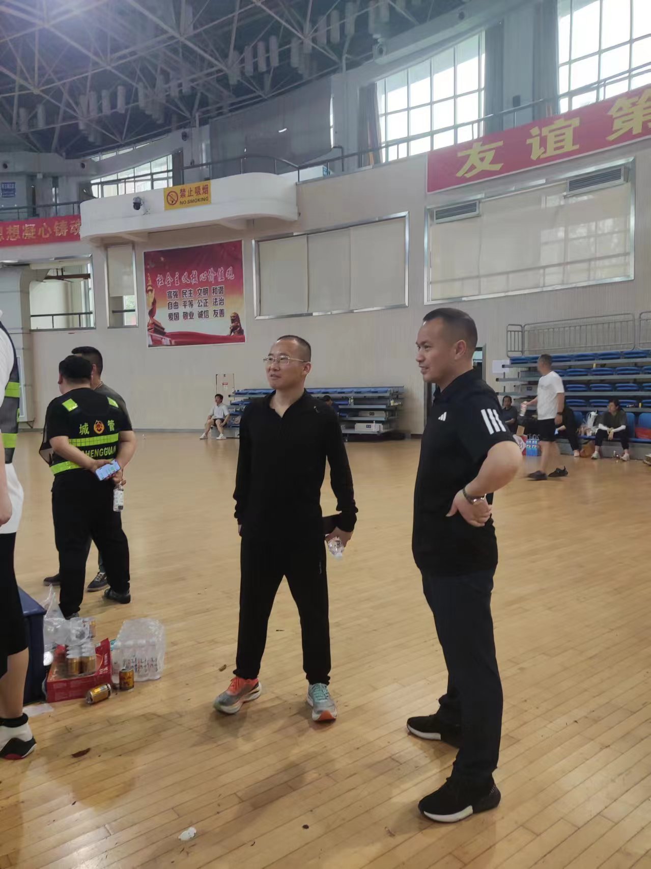 4月29日,永州市体育中心场内人头攒动,加油助威声不绝于耳,由冷水滩区总工会组织的2024年首届职工运动会正在激战之中。冷水滩区城管局积极组队参加了此次运动会拔河比赛活动。局工会主席邓礼军亲临赛场带队,为我局参赛运动员加油喝彩。