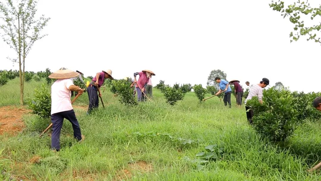 在零东圩村的四季香农场里,十余名村民正忙碌着为柑桔锄草松土。这片基地占地近2000亩,多年来都是毫无收益的荒山。2年前,外来的商人齐建锋看中了这块地,准备投资种植黄金贡柚、沃柑等柑桔新品种。他把想法告诉镇村两级,没过多久,千亩土地的流转手续就办结完毕。
