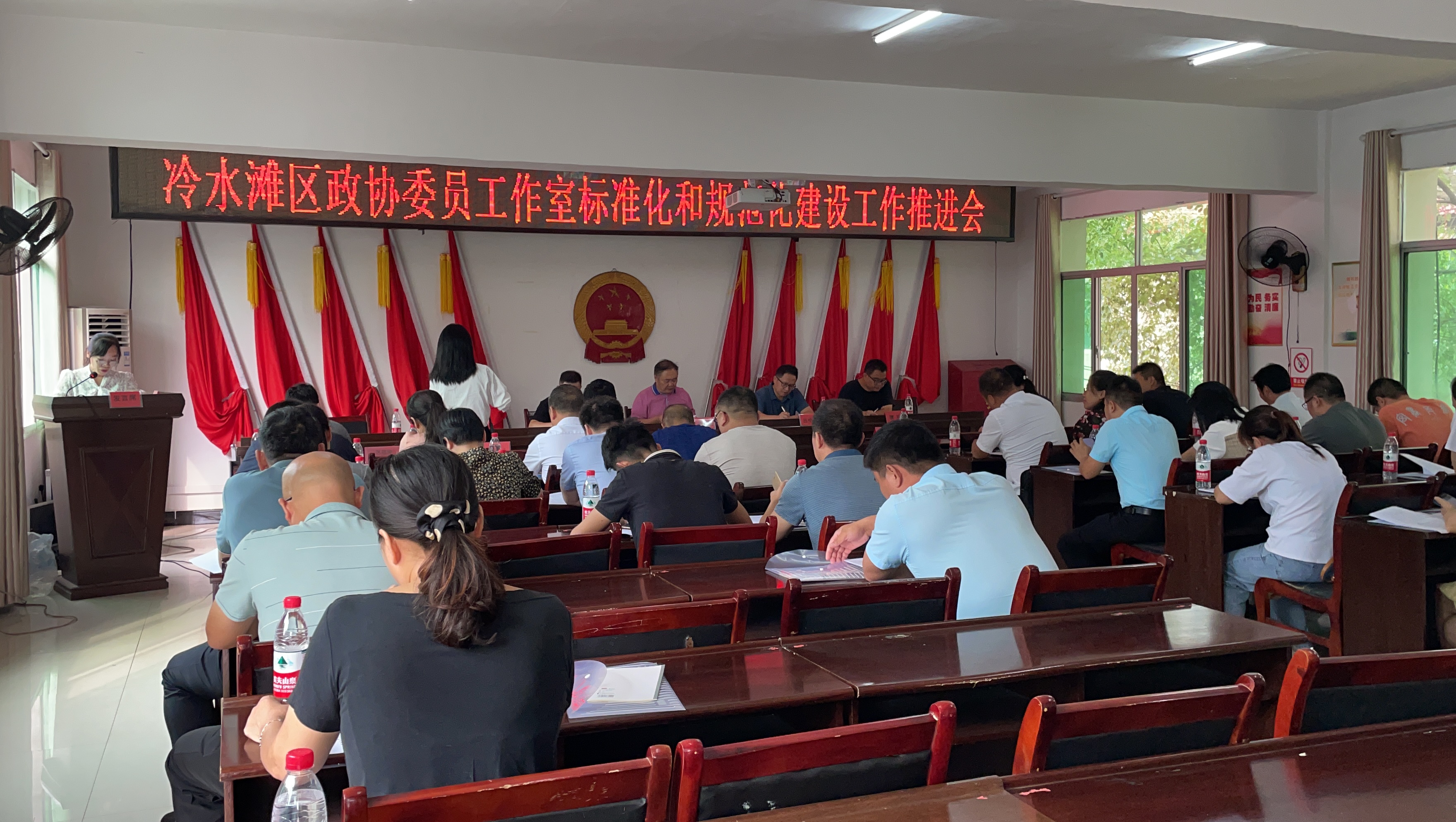 近日,冷水滩区政协委员工作室标准化和规范化建设工作推进会在蔡市镇召开。区政协党组书记、主席艾祥柏出席会议并讲话,副主席吕绍华、熊健,区政协党组成员、秘书长、办公室主任文银玲等出席会议,区政协各委室主任、各乡镇街道委员工作室召集人和各界别组组长参加。
