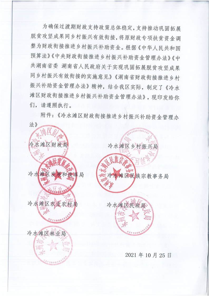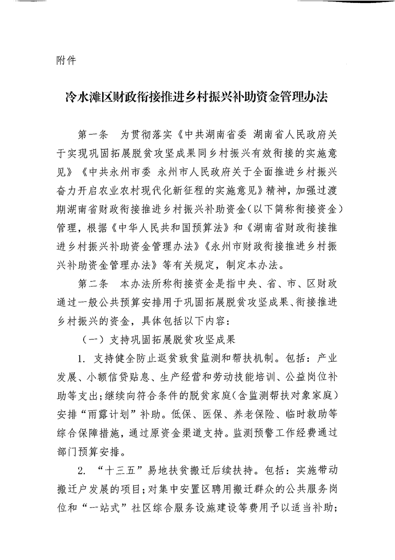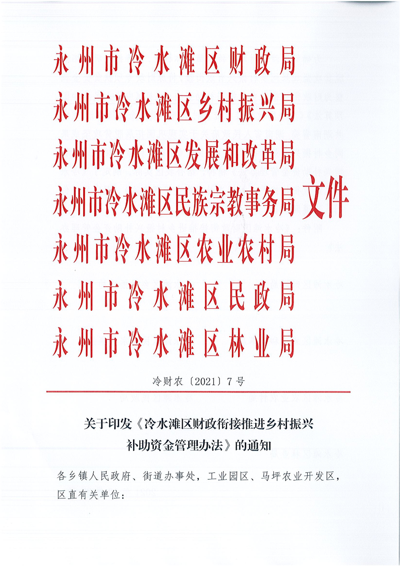 关于印发《冷水滩区财政衔接推进乡村振兴补助资金管理办法》的通知