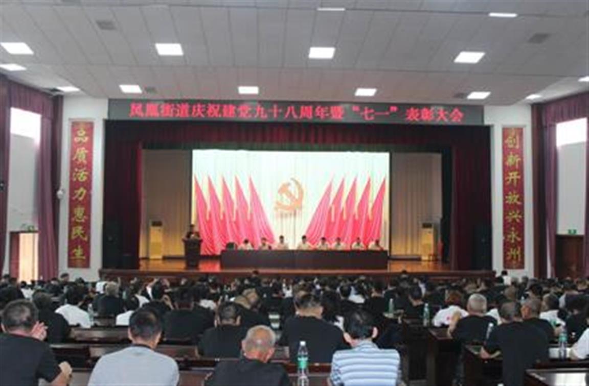 2019年7月1日上午凤凰街道办事处在市委党校召开庆祝建党98周年暨“七·一”表彰大会。街道全体机关干部、街道党委书记、各社区党支部书记、支部委员、模范党员参加会议,共计四百余人。