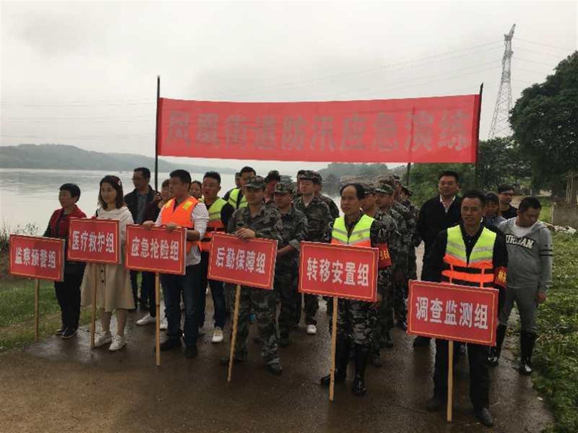 5月13日,冷水滩区凤凰街道办事处组织街道基干民兵应急分队、农业组、四丘田社区、谷源社区等40余人开展防汛应急演练。