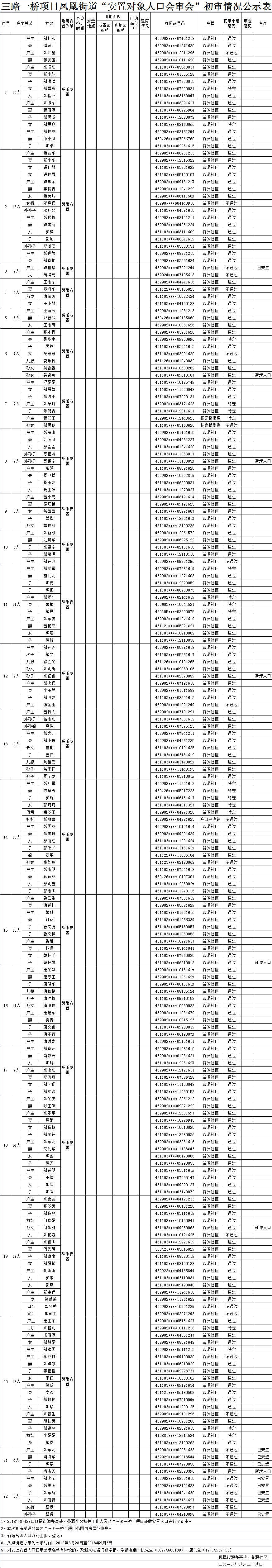 三路一桥项目凤凰街道“安置对象人口会审会”初审情况公示表