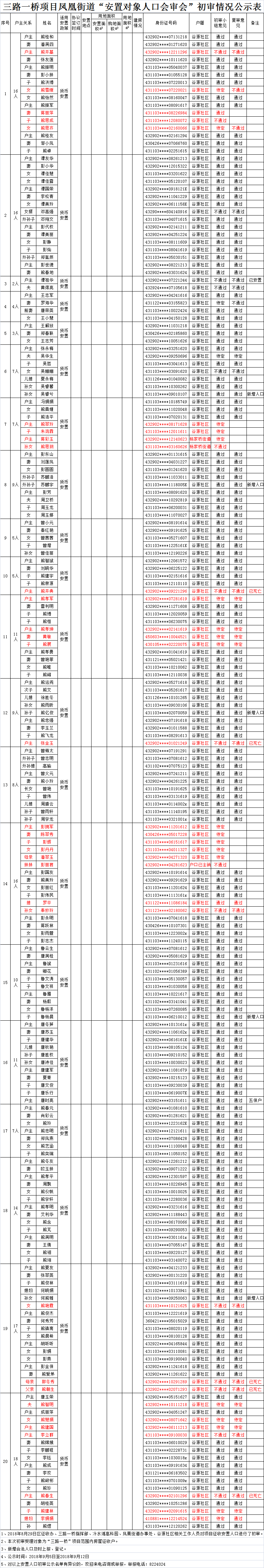 三路一桥项目凤凰街道“安置对象人口会审会”初审情况公示