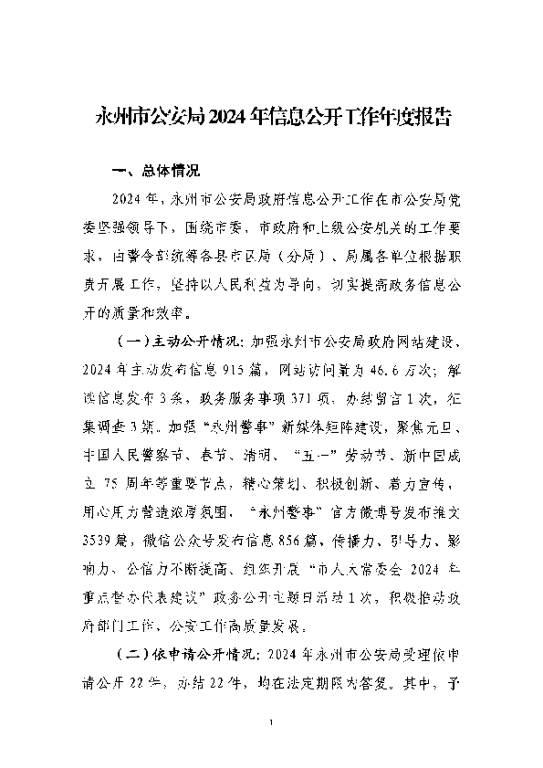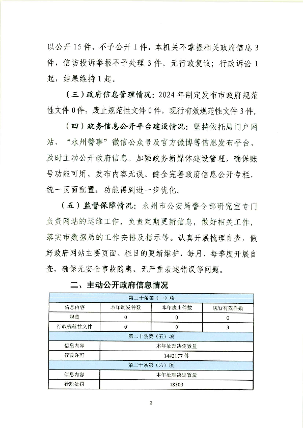 永州市公安局2024年信息公开工作年度报告