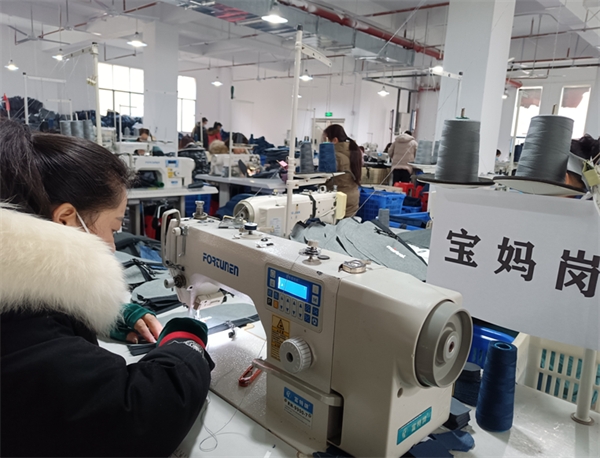 家住花桥街镇的吴双化有2个孩子,由于要料理家务,没有固定的工作时间,工作一直难找。从亲戚那里得知永州鸿利来箱包有限公司设立宝妈工作岗后,她就成为宝妈生产线上的一名员工。现在已经在公司上班2个月。“来这边上班以后,我两个小孩通过相关政策也转到了园区附属小学上学,我每天5点钟下班再去学校,刚好赶上接小孩的时间。宝妈岗让我实现家门口就业,又能照顾孩子也能拿到钱,非常好。”