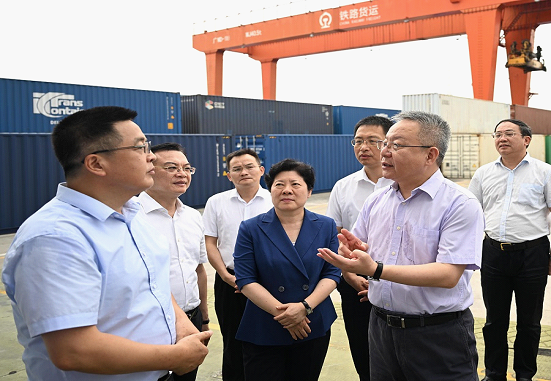 7月24日,沈晓明在长沙国际铁路港,了解国际贸易通道建设、产品进出口等情况。