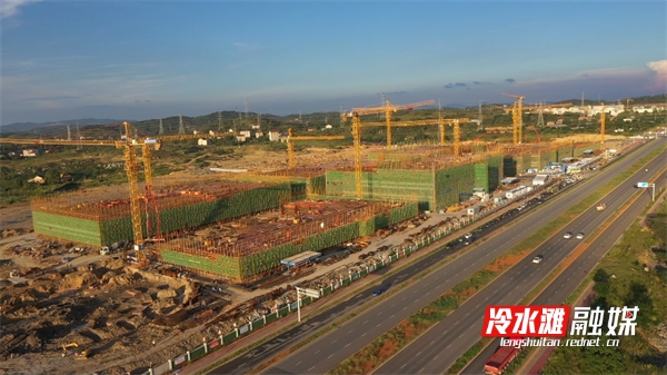 湖南永州国际陆港有限公司现场代表陈世超介绍:“目前八栋框架结构厂房已进全面入主体施工阶段,钢结构厂房已进场安装。下一步,我们将重点关注型钢柱的生产加工和安装,全力冲刺10月底主体全面封顶、元月底竣工交付目标。”