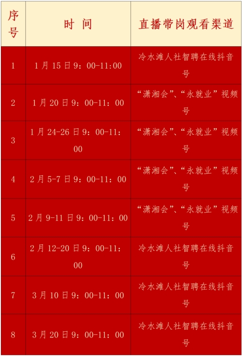 2025年冷水滩区“春风行动”直播带岗及网络招聘会安排