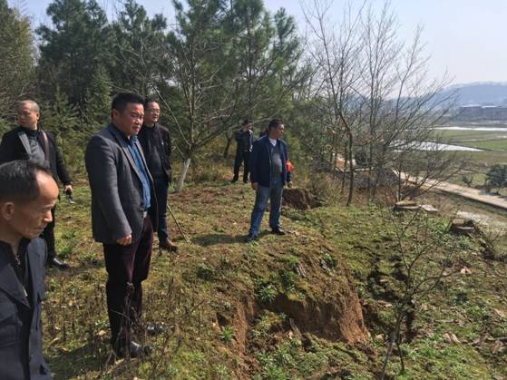 因近期持续降雨,冷水滩区新发多处地质灾害。2019年3月11日上午,冷水滩区分管地灾防治副区长张文风在区国土资源分局局长曾祥德、区地质灾害防治技术支撑单位省煤田地质局第三勘探队副队长、总工程师邹建勇、杨村甸乡乡长郭晓晖等人的陪同下到杨村甸乡各地质灾害隐患点检查地质灾害防治工作。