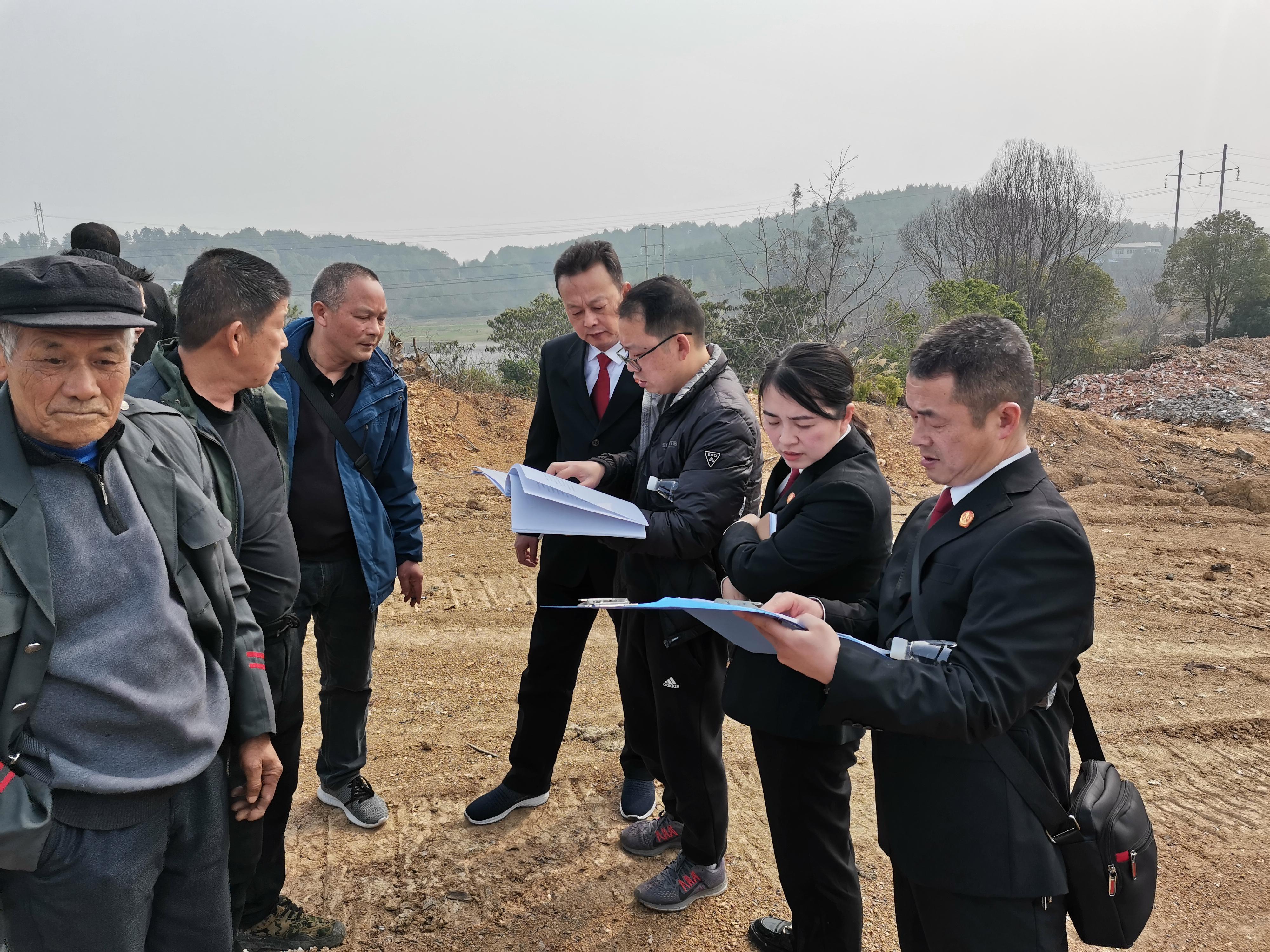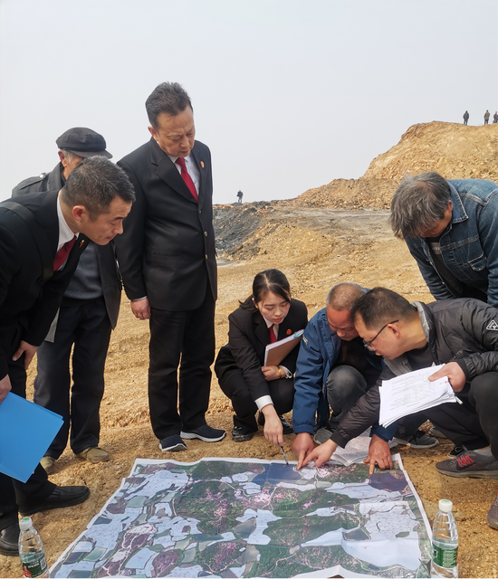 为维护社会稳定,最大限度地把矛盾纠纷解决在基层,促进永州市委党校新校区建设项目顺利实施, 3月2日,永州市中级人民法院、冷水滩区自然资源确权登记和矛盾调处中心、岚角山街道办事处组成联合工作组对岚角山街道保方寺社区山林权属争议进行现场勘验,涉及争议的当事人依次向工作组举证陈述山林权属边界事实、依据,工作组在充分听取了村、组干部意见并向相关知情人员走访调查,结合现场踏勘情况,明确权属争议的范围、四至界线及地名的位置。