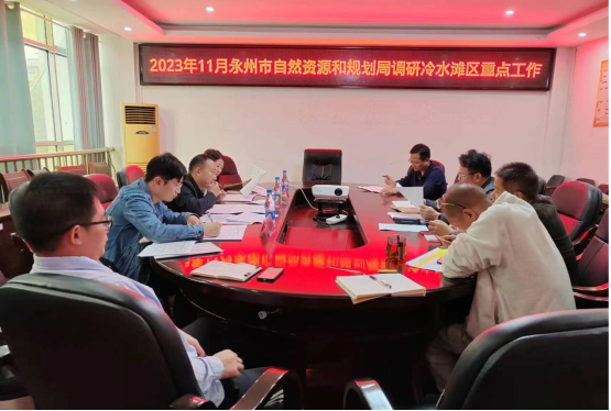 2023年11月7日下午,永州市自然资源和规划局党组成员、副局长雷旭升带队到冷水滩区调研自然资源重点工作情况,市自规局相关科室负责人,冷水滩区自然资源局中层以上领导参加调研。