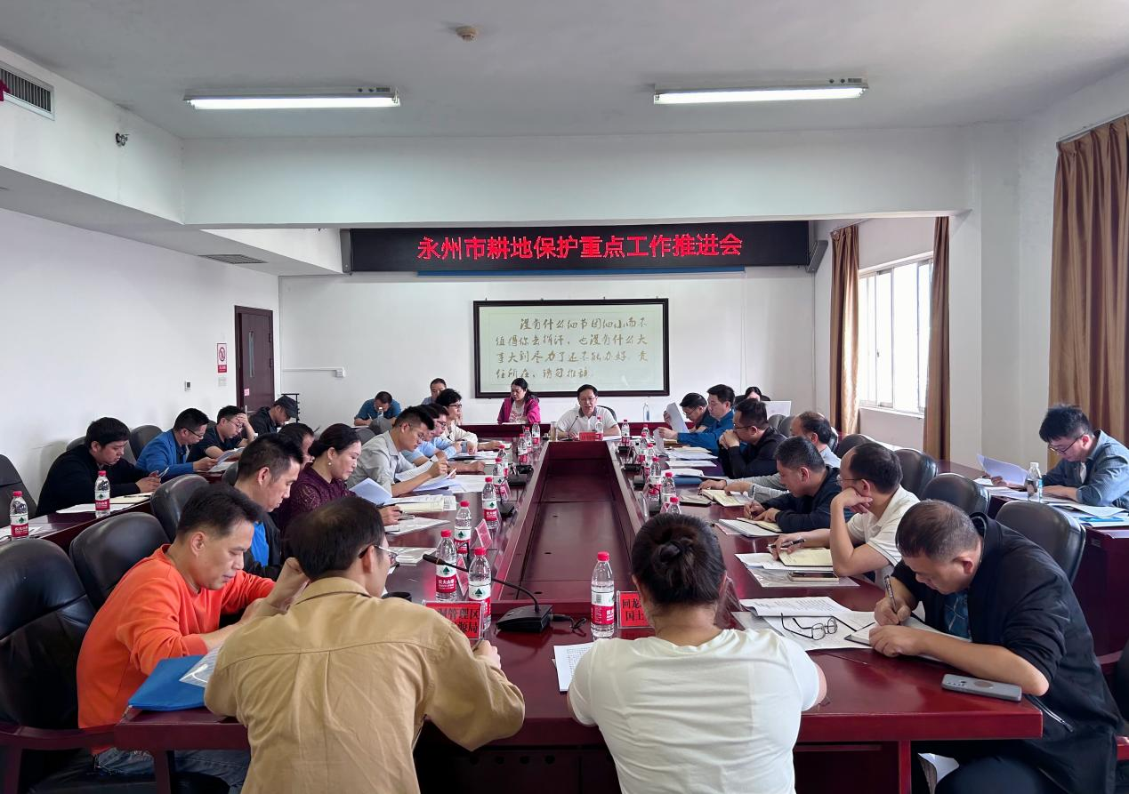 近日,永州市耕地保护重点工作推进会在市自然资源和规划局召开。会议深入学习习近平总书记关于耕地保护和保障粮食安全的重要指示精神,深刻认识全面推行田长制严格耕地保护的重大意义,传达省厅耕地保护座谈会议精神,研究部署当前我市耕地保护重点工作。市局总规划师唐朝晖主持会议并讲话。