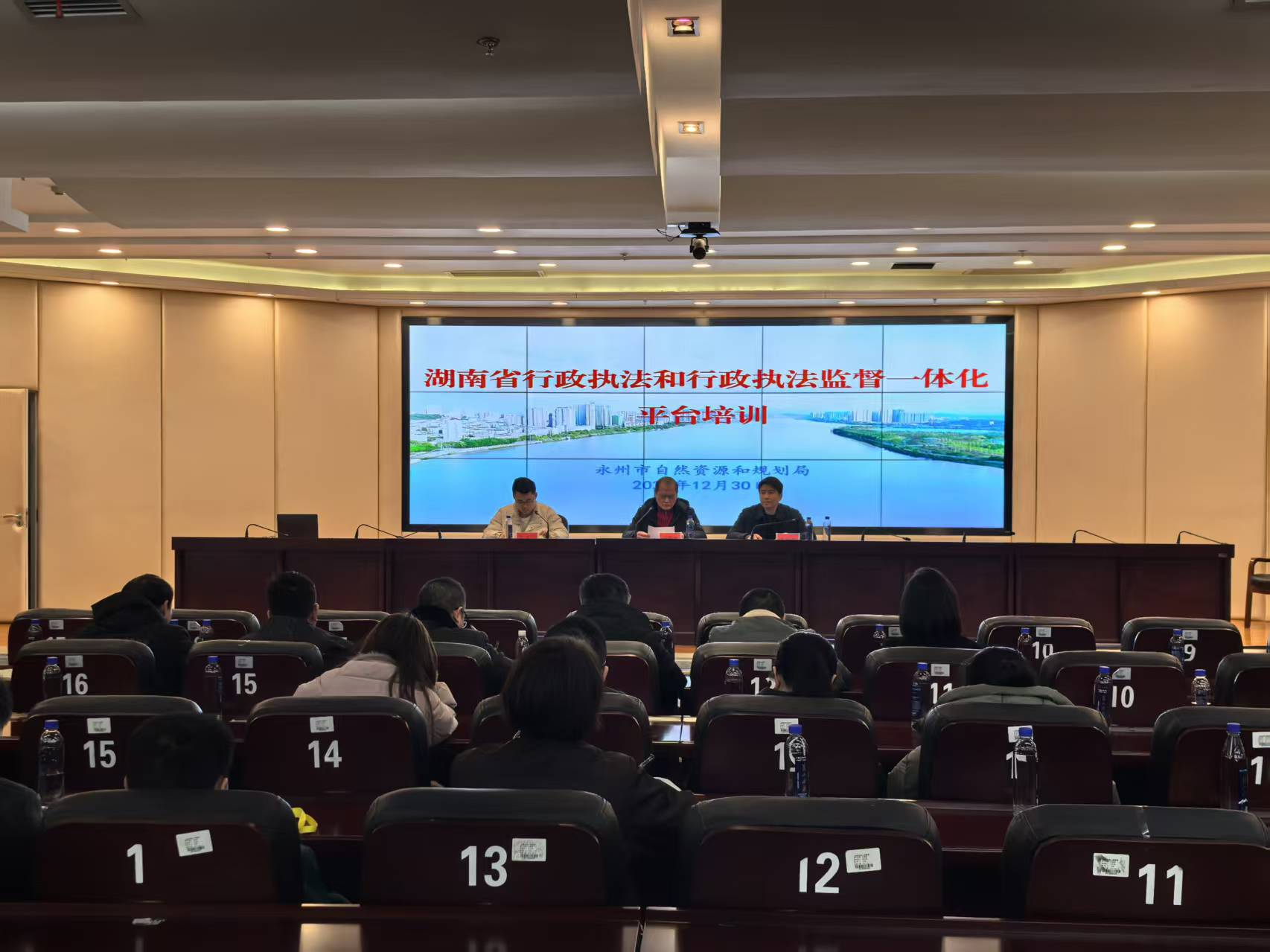 为加快推进数字法治政府建设,提升自然资源和规划领域行政执法效能,12月30日,市自然资源和规划局、市司法局联合举办“湖南省行政执法和行政监督一体化平台”操作培训会。市自然资源和规划局党组成员、副局长廖道南主持,市人民政府行政执法协调监督局负责人出席。全市自然资源和规划系统行政执法工作骨干160余人参加培训。