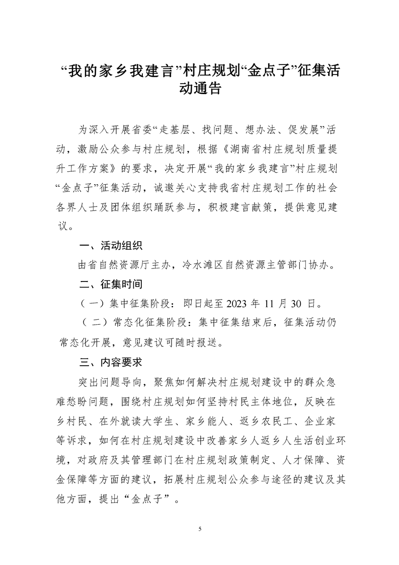 关于开展“我的家乡我建言”村庄规划“金点子”征集活动的通知