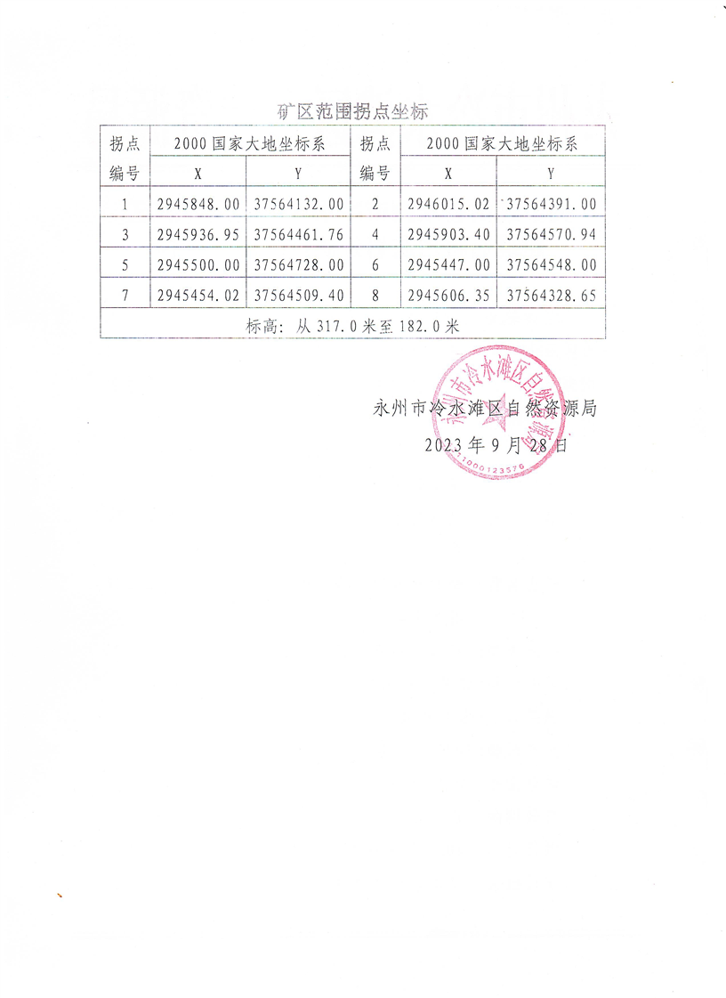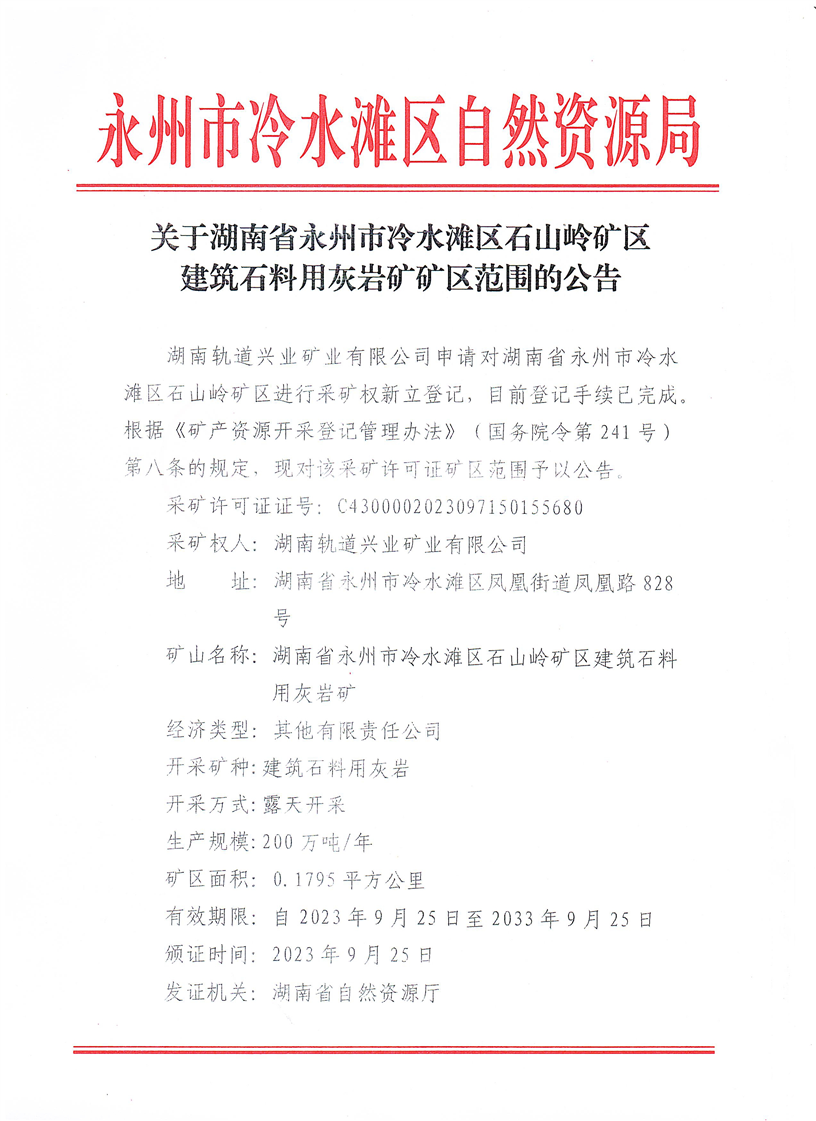 石山岭矿区范围公告